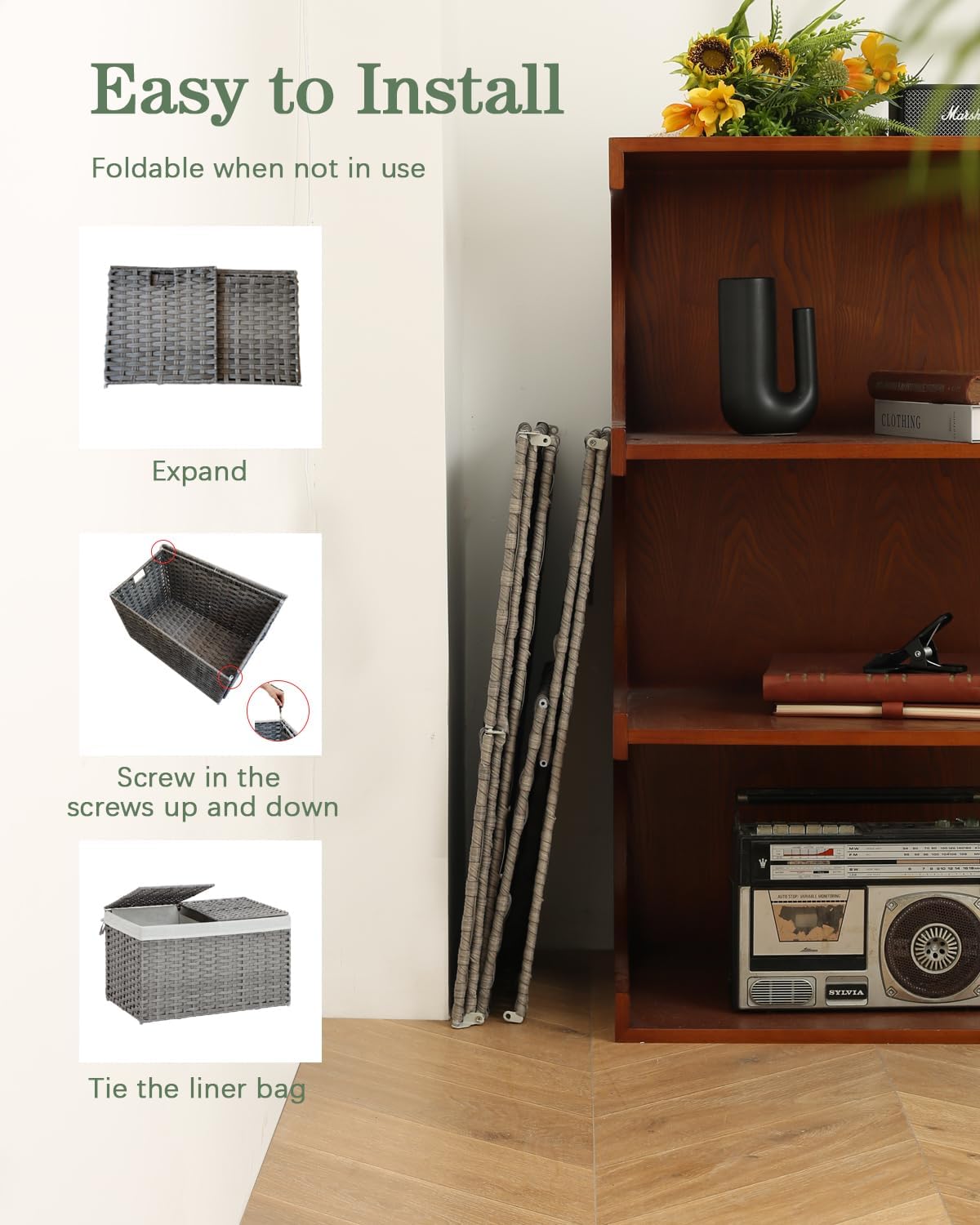 - Easy to Assemble: Large wicker basket is made of PE rattan, wicker hamper with lid is easy to assemble, if you decide to stop using wicker storage baskets you can fold woven hamper with lid up for storing woven basket with lid more compactly.