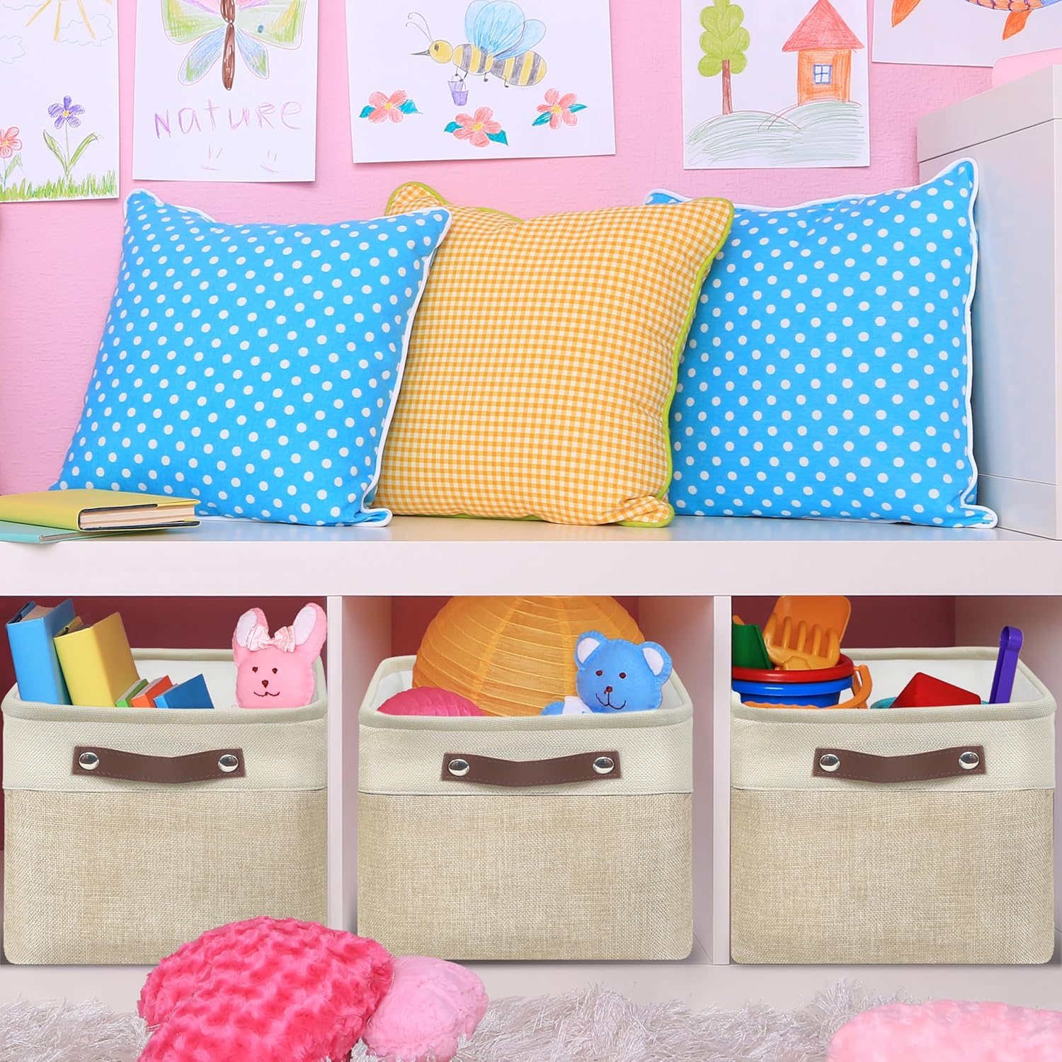 - Durable Material: Linen upper with EVA baking and reinforced bottom base for bins keep its shpae while staying soft