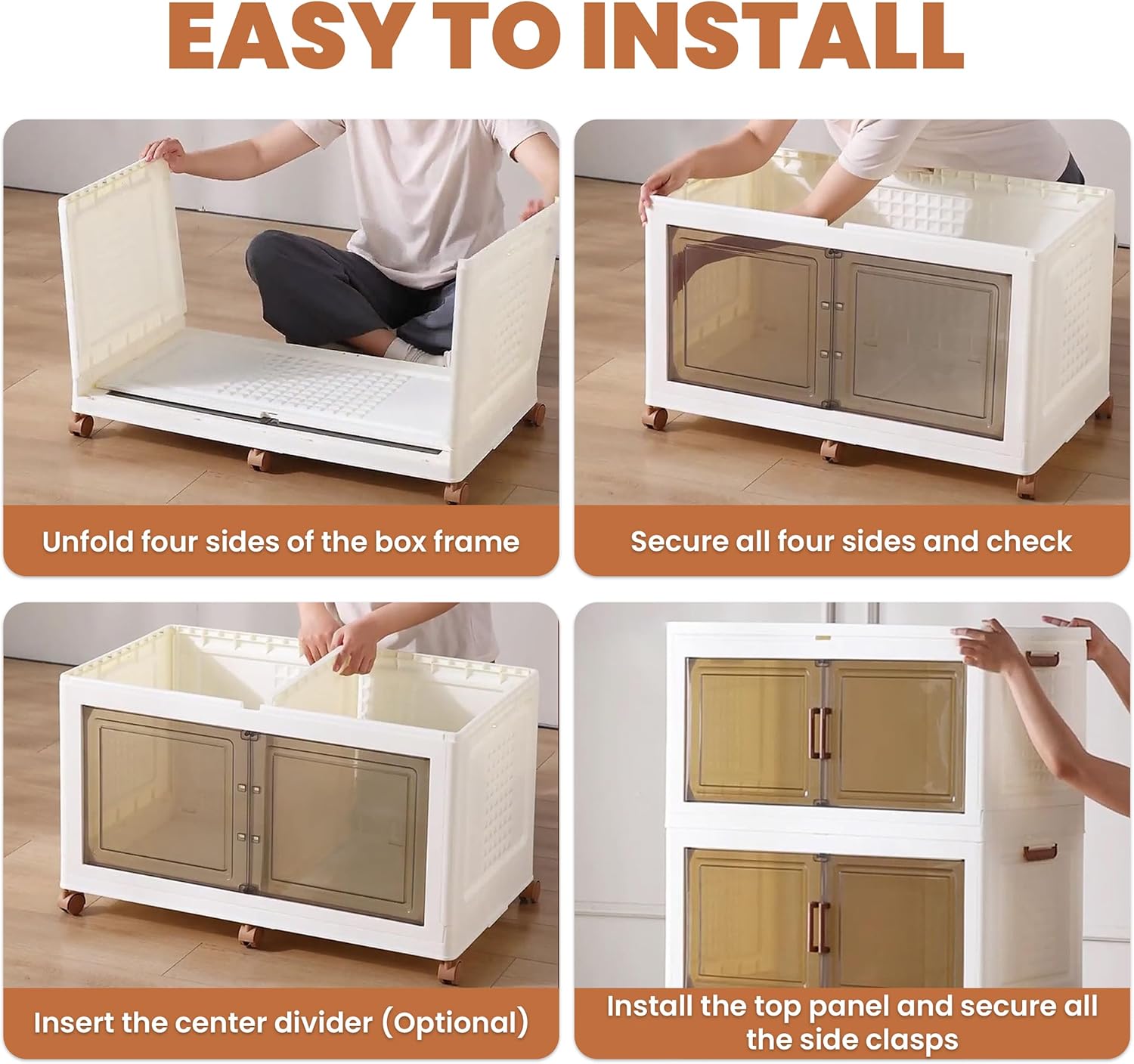- [𝐄𝐚𝐬𝐲 𝐭𝐨 𝐀𝐬𝐬𝐞𝐦𝐛𝐥𝐞] These stackable storage bins are designed for easy, tool-free assembly, ensuring maximum convenience. With a user-friendly design and straightforward instructions, you can set them up in no time. The bins stack securely on top of each other, providing a safe and organized storage solution. Smooth-rolling wheels make it easy to move them wherever you need.