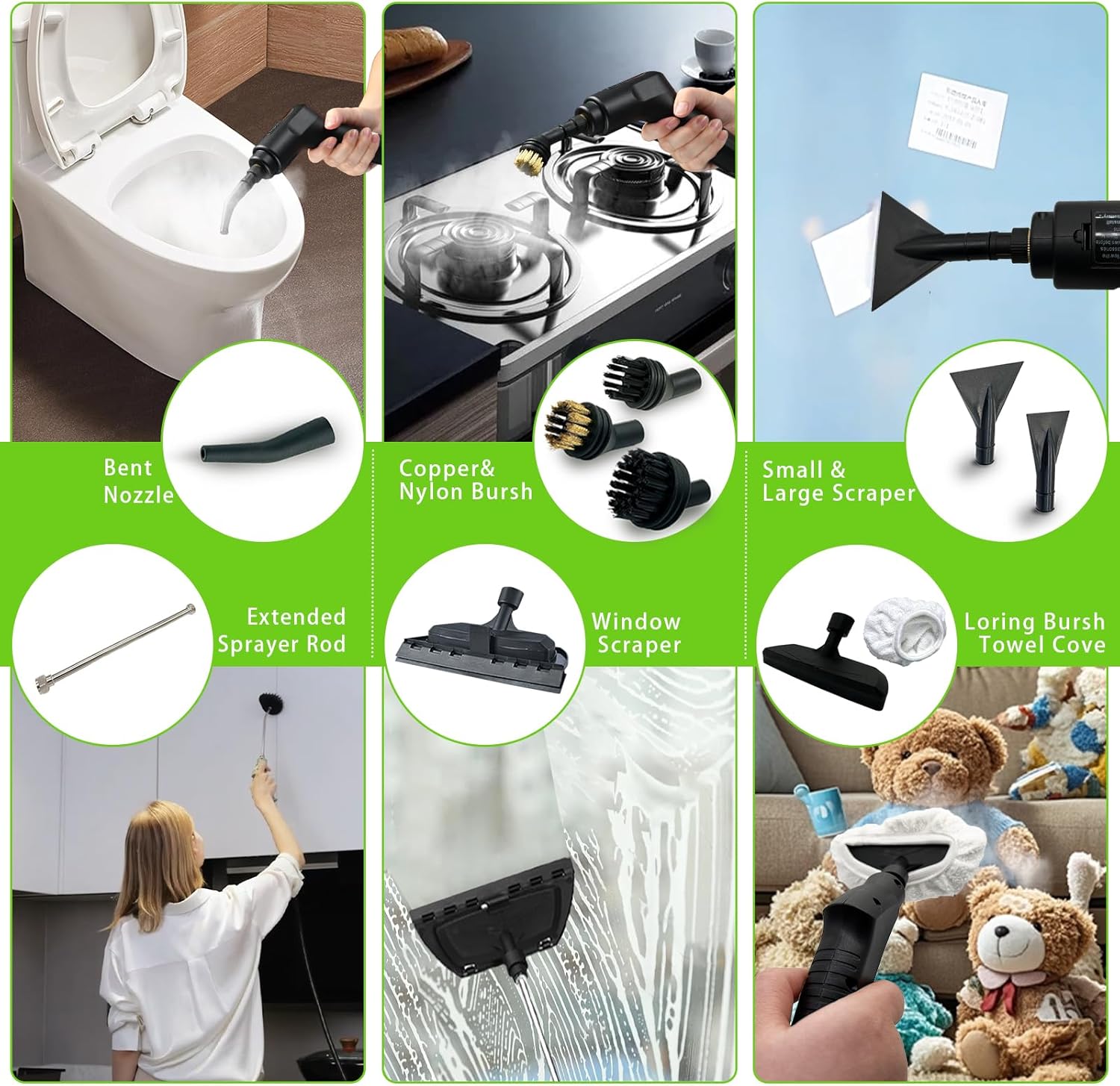 - ăMulti-function Steam Cleaner & Multiple Accessories SetăOur AULANK powerful home steam cleaner includes a wide range of brushes accessories, and this all-in-one steamer for cleaning.It can effectively clean stubborn greasy dirt and stains, and is suitable for cleaning walls, cooktops, smoke lamps, microwave ovens, washing machines, refrigerators, etc., You can choose the accessories which you needed and to clean hard-to-reach areas.Make your home cleaner and fresher than ever.