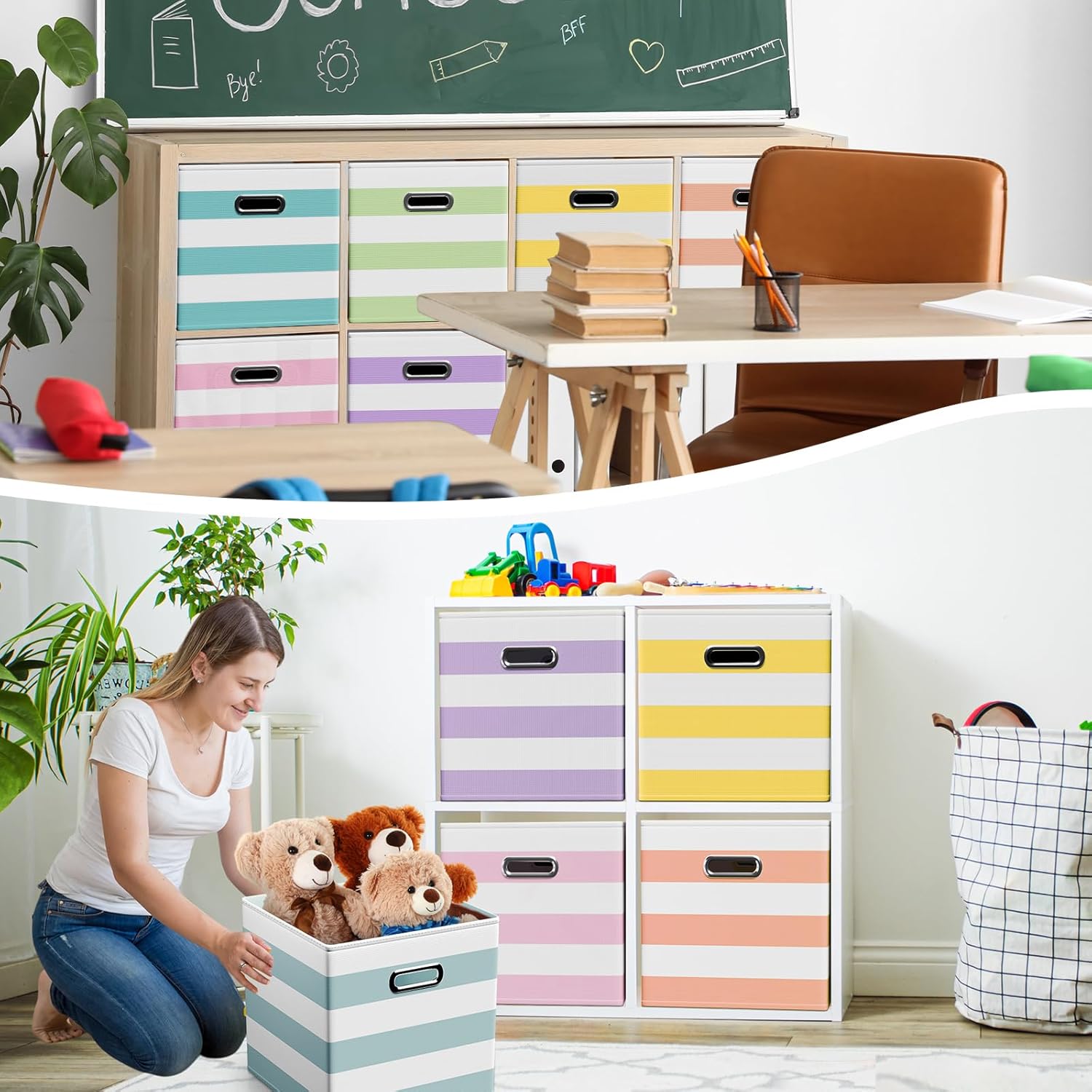 - Wide Range of Uses: whether you're organizing a nursery, playroom, office, or laundry area, these storage cubes are up to the task; They're ideal for stowing away clothes, books, toys, craft supplies, seasonal items, and more; These storage cubes adaptable design fits seamlessly into various spaces, including shelves, closets, bookcases, and desks