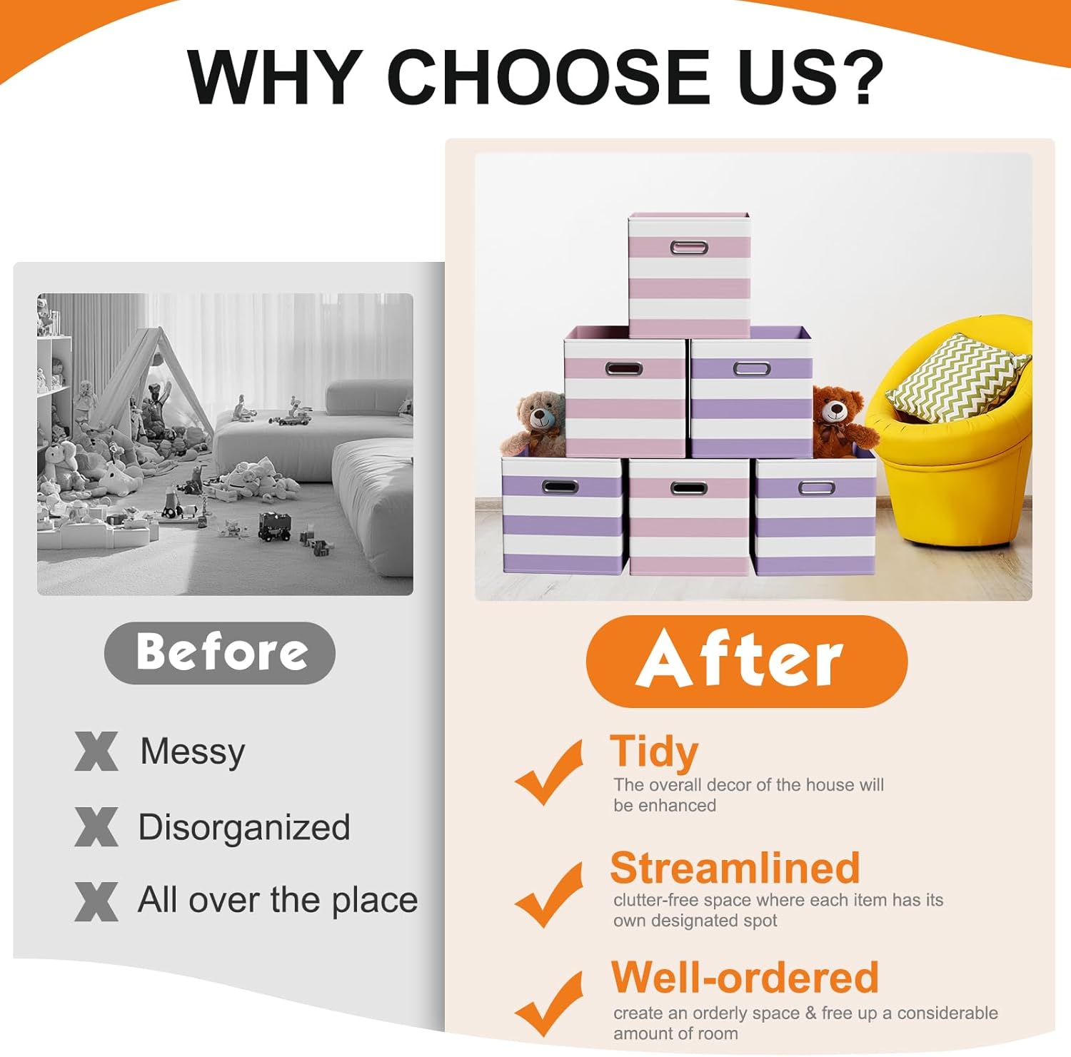 - Wide Range of Uses: whether you're organizing a nursery, playroom, office, or laundry area, these storage cubes are up to the task; They're ideal for stowing away clothes, books, toys, craft supplies, seasonal items, and more; These storage cubes adaptable design fits seamlessly into various spaces, including shelves, closets, bookcases, and desks