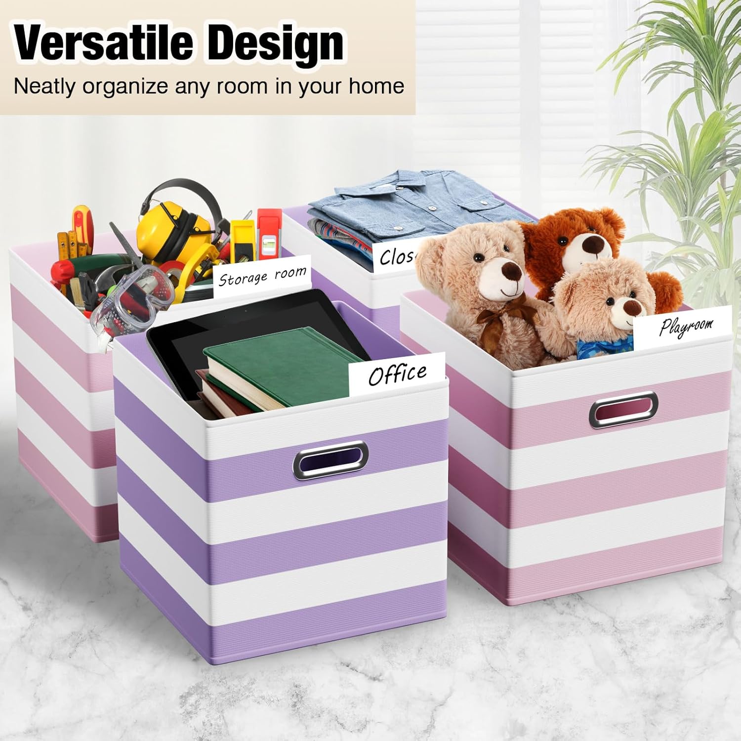 - What You Get: you will receive 6 pieces of d fabric storage cubes in purple and pink, 3 of each color; Each bin measures 10½"L x 10½"W x 11"H, perfectly sized to slot into your existing shelves or cabinets, adding a splash of color while keeping your space tidy