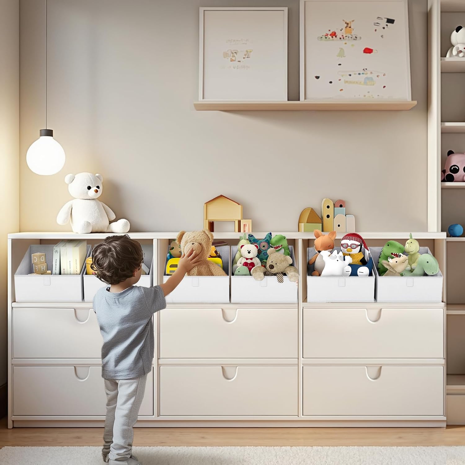 - 【Trapezoidal Design】These storage cubes are Trapezoid design that makes finding things convenient, also allows easy access when putting on the highest shelf. These are ideal closet bins for clothes, bags, shoes, towels, blankets, toys, dolls, and more
