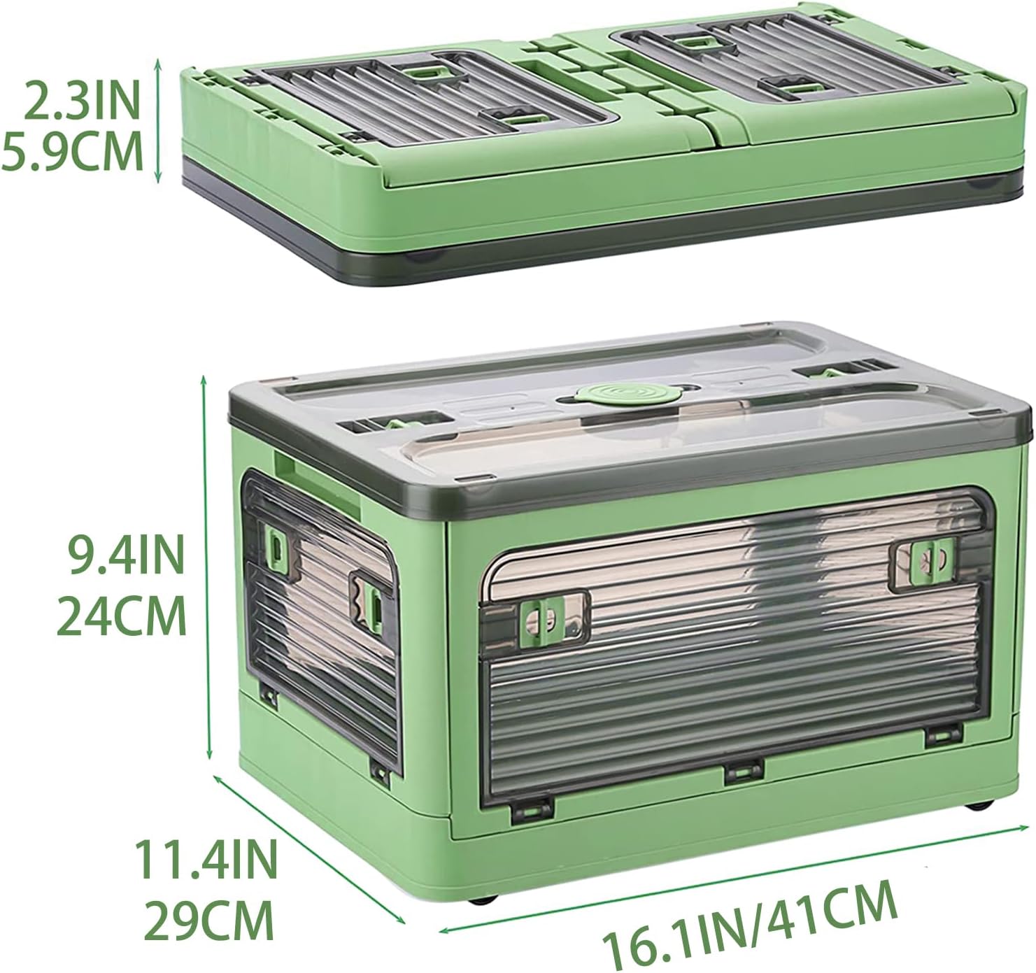 - [Product size]The storage bin measures 16.1 inches long, 11.4 inches wide & 9.4 inches deep(Fold 2.3 inches),The transparent container is durable and made of high-quality plastic materials with no odor and no harm to the body