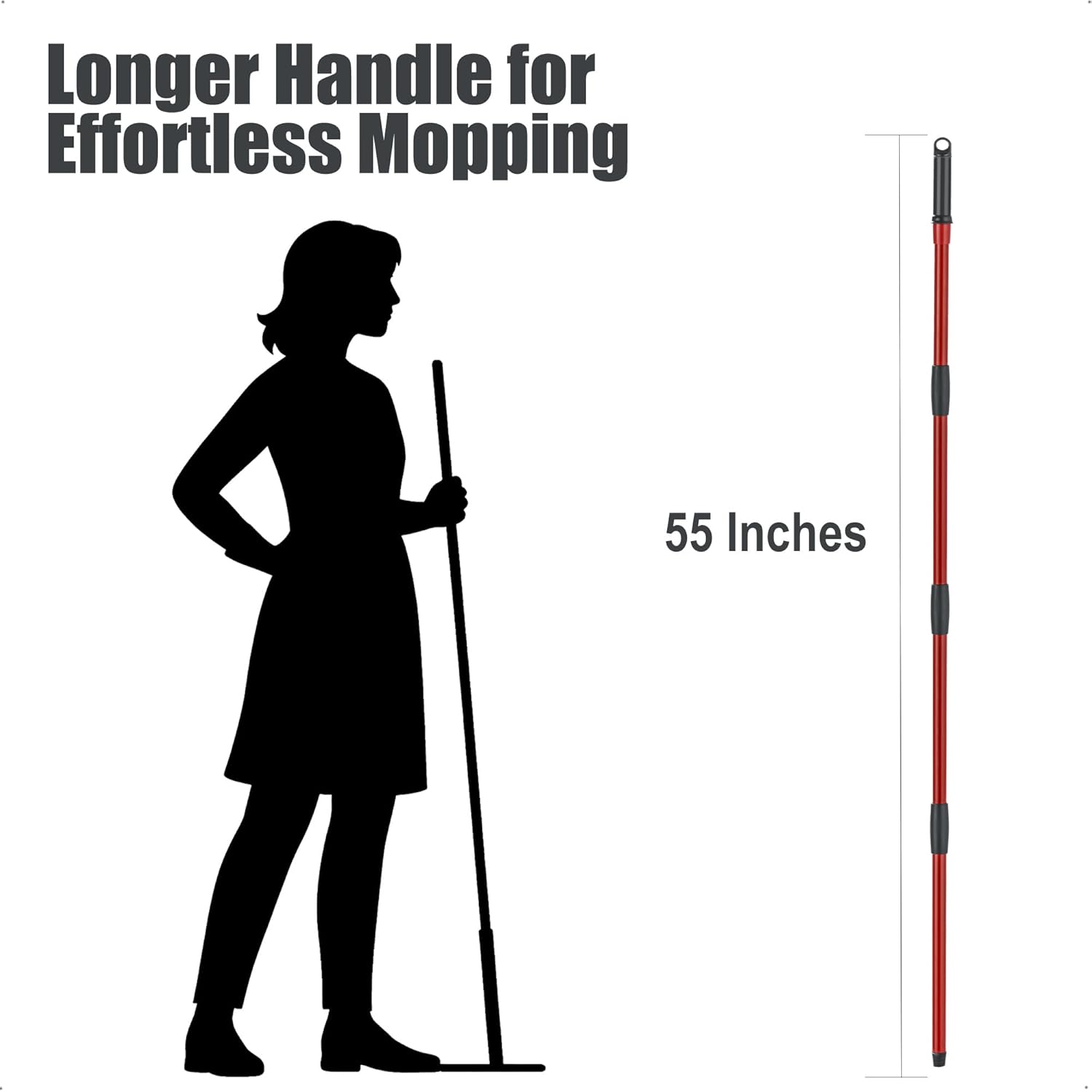 - Back-Saving Extended Handle – 55-inch 4-section handle is 12% longer than original. Reduces bending and strain with upright cleaning comfort. Tested for months to minimize back and shoulder fatigue.