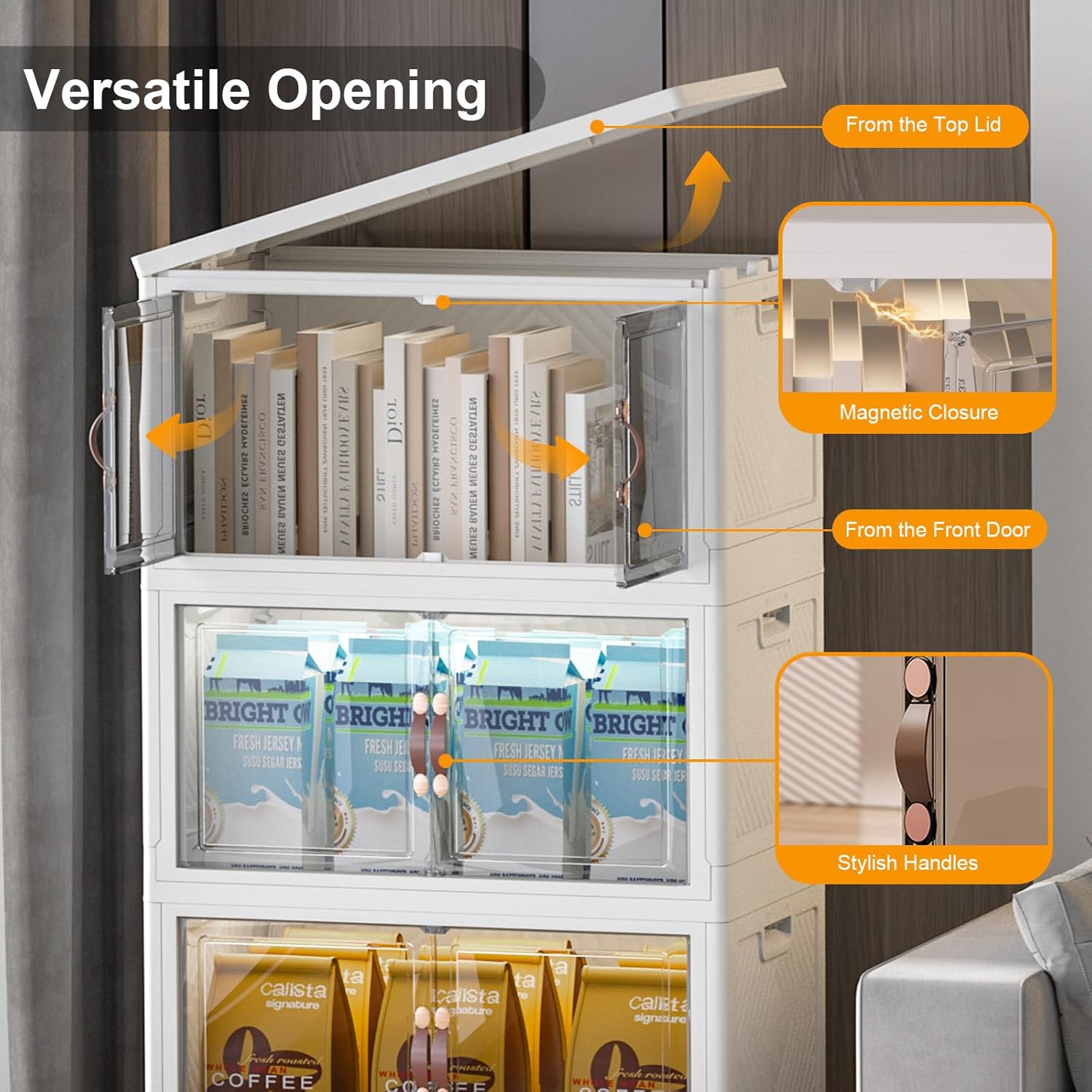 - 【Multi-Access Design for Effortless Organization】: Our versatile stackable storage bins open front offer front-opening bins for quick grab-and-go access. Use stackable storage bins with lids or stackable storage bins with doors to conveniently access items while keeping them protected and neatly contained.