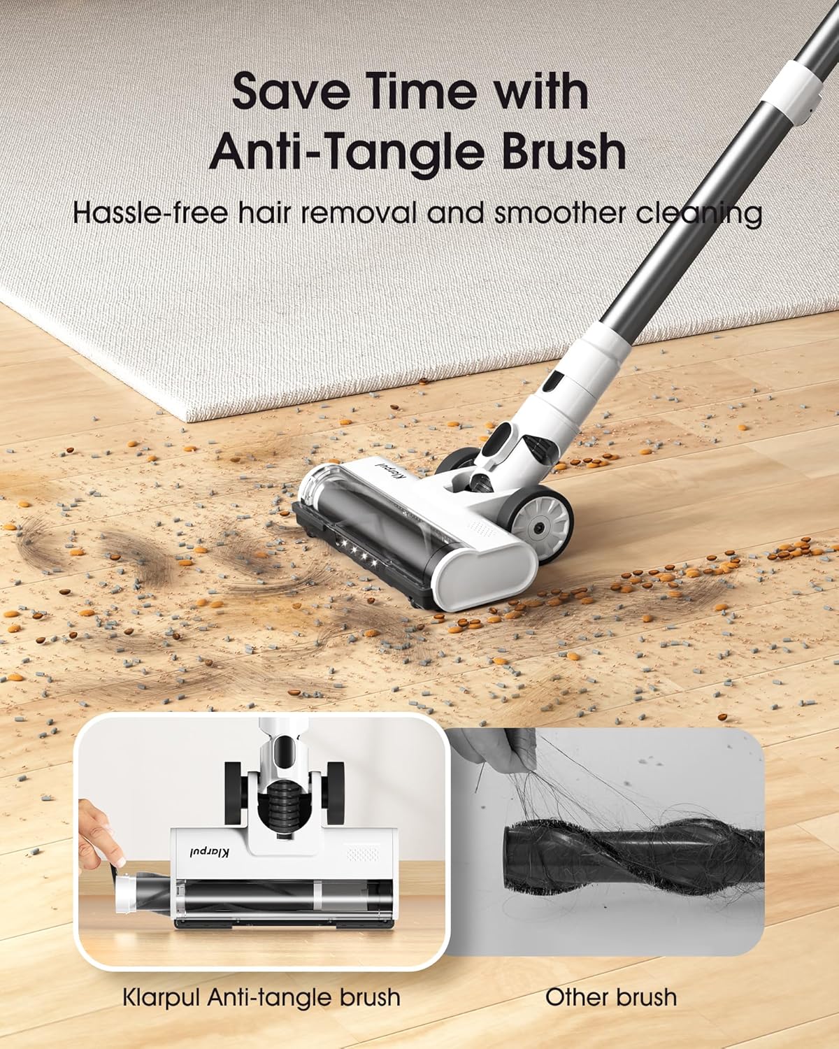 • 48Kpa Ultra-Strong Suction Power – Driven by a 580W advanced brushless motor, it delivers up to 48Kpa of ultra-strong suction, effortlessly capturing fine dust, embedded dirt, and stubborn pet hair across various floor surfaces.