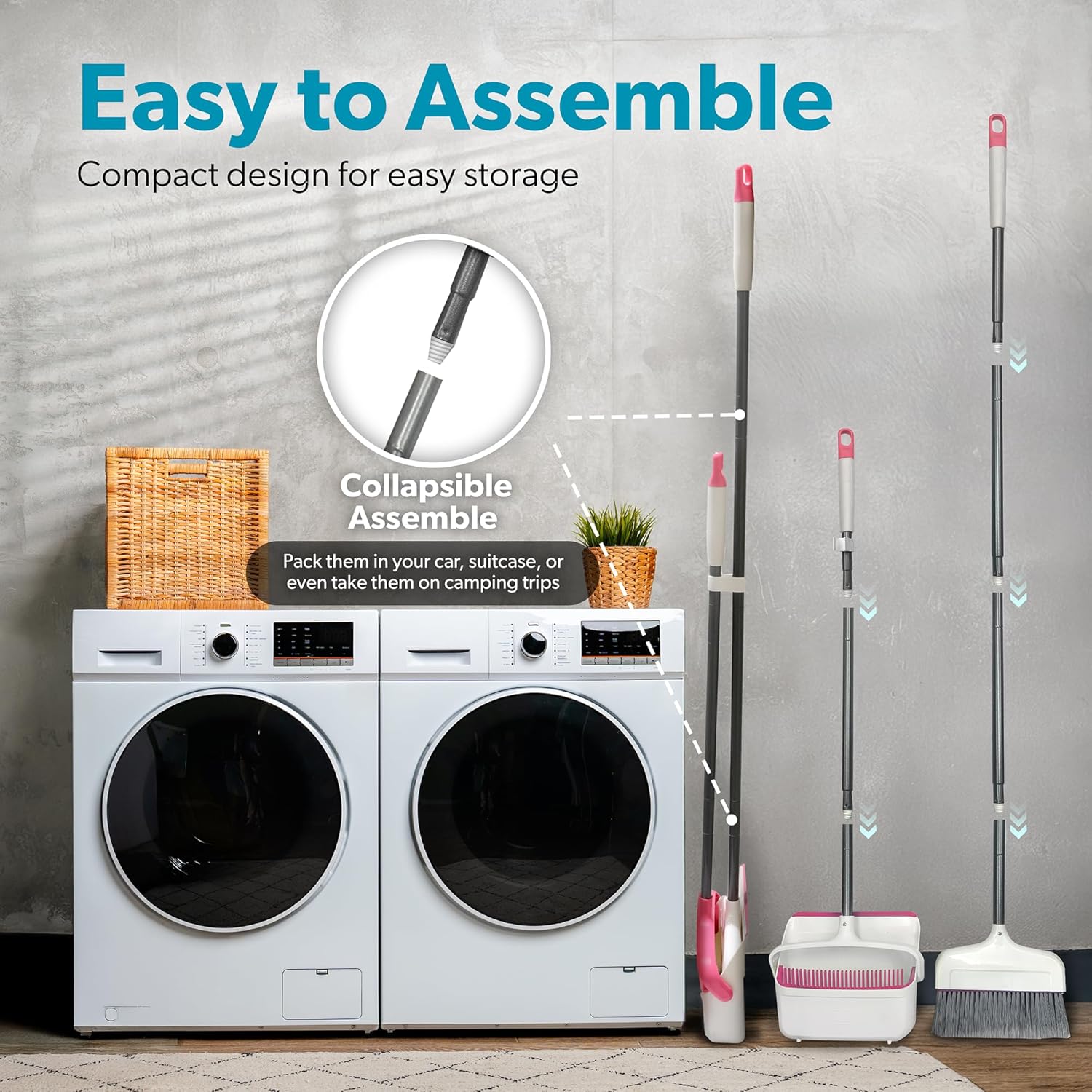 BLACK+DECKER Butler Broom & Dustpan Set - Stand-Up Design - Lightweight, Space-Saving Combo for Kitchen, Living Room, Bathroom, Lobby Floors - Home Cleaning Essential, White/Pink