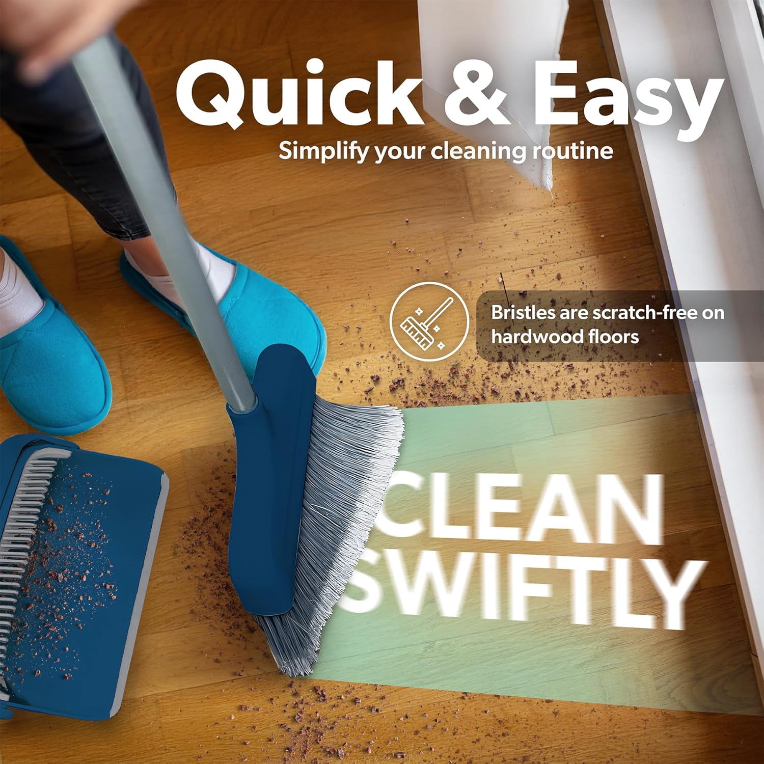 BLACK+DECKER Butler Broom & Dustpan Set - Stand-Up Design - Lightweight, Space-Saving Combo for Kitchen, Living Room, Bathroom, Lobby Floors - Home Cleaning Essential, Ocean Blue