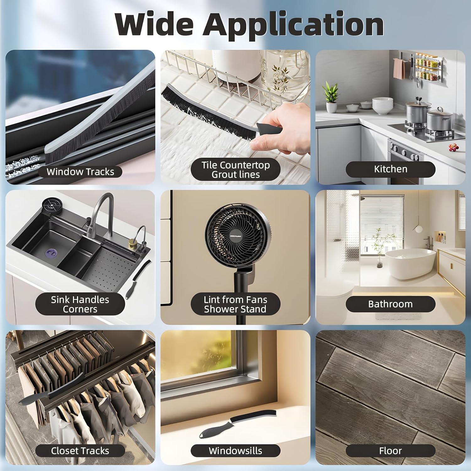 • Wide Application: A crevice brush is a cleaning tool specifically designed to clean and clear narrow crevices. Cleaning Tools for cleaning tools for window tracks, kitchen, Home, Bathtub, Bathroom, Dish, Window, Vehicle, Faucets, Toilet, Grout, Floor, Stove