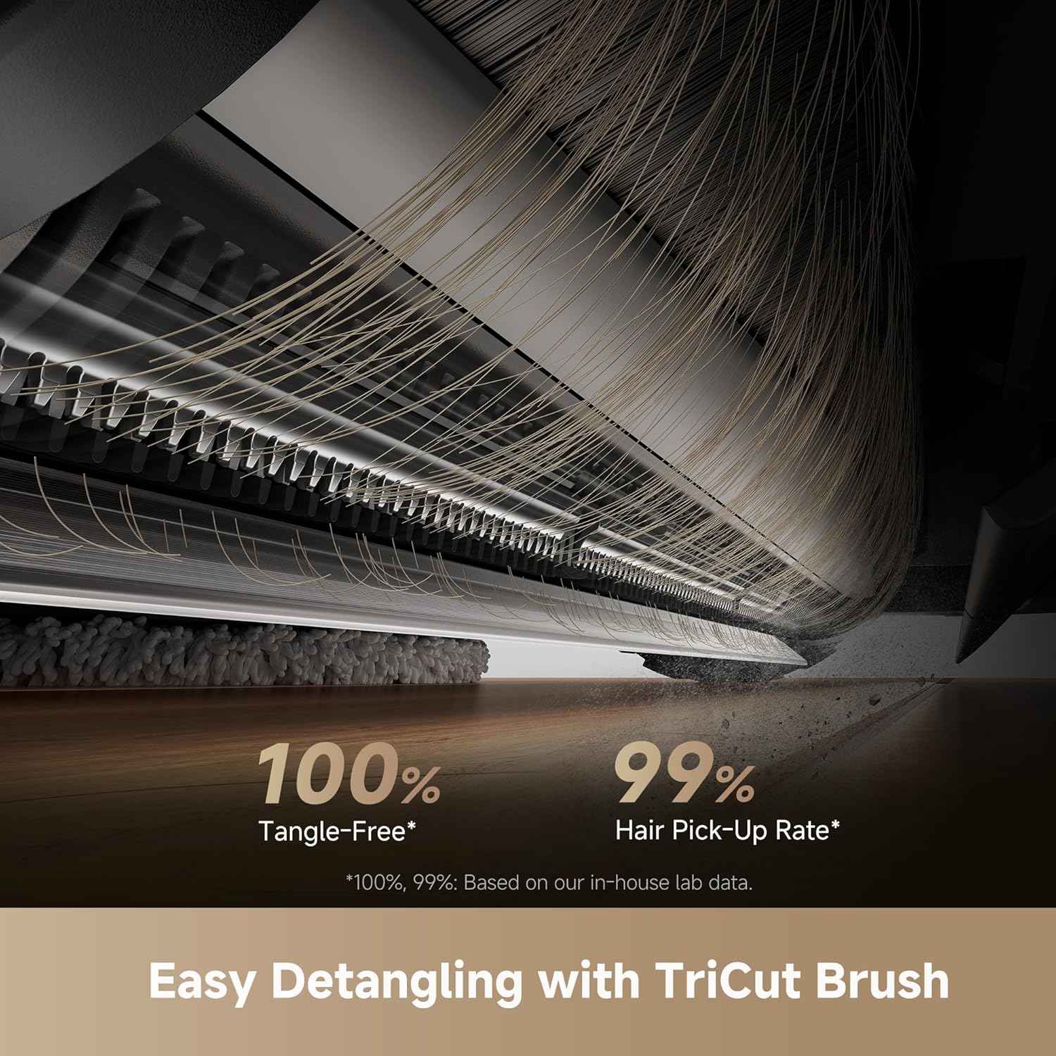 - Tangle-Free Hair Removal with Specialized Brush: Designed with an innovative TriCut Brush, this robot vacuum and mop combo efficiently collects and cuts through long hairs, preventing tangles and ensuring smooth operation with minimal manual intervention.