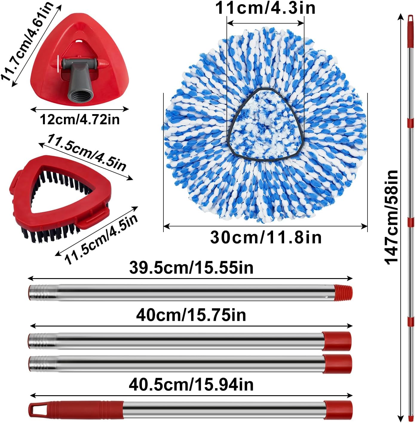 - 【Triangle mop base/Scrubber mop head brush】-Designed with a rounded triangle shape, this mop head ensures your furniture stays protected while cleaning. The scrub mop head brush reaches into tight spaces, grout lines, and hard-to-reach areas, making it good for cleaning tubs, tiles, around toilets, decking, and tough dirt on floor tiles.