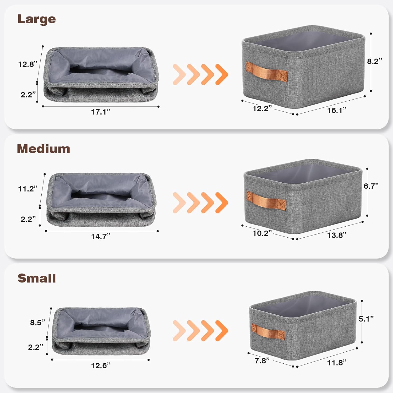 Large Storage Baskets for Shelves 3 Packs, Fabric Storage Bins for Shelves with Handles, 11.8'' L ×7.8'' W × 5.1'' H Collapsible Baskets for Organizing Clothes, Toy, Grey