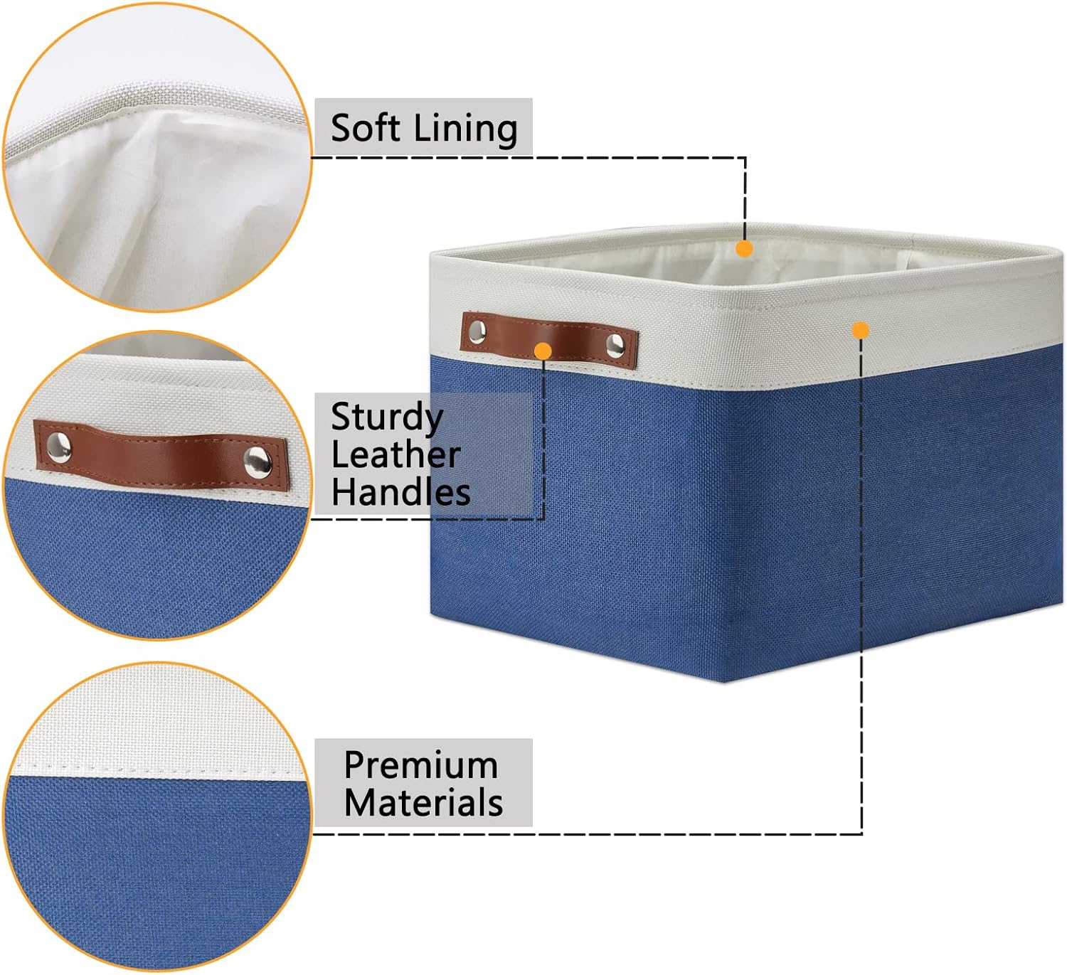 DULLEMELO Fabric Storage Basket for Closets,15x11x9.5 inch Foldable Storage Basket Bin with Handles for Office, Closet,Bedroom (White&Blue,1 Pack)