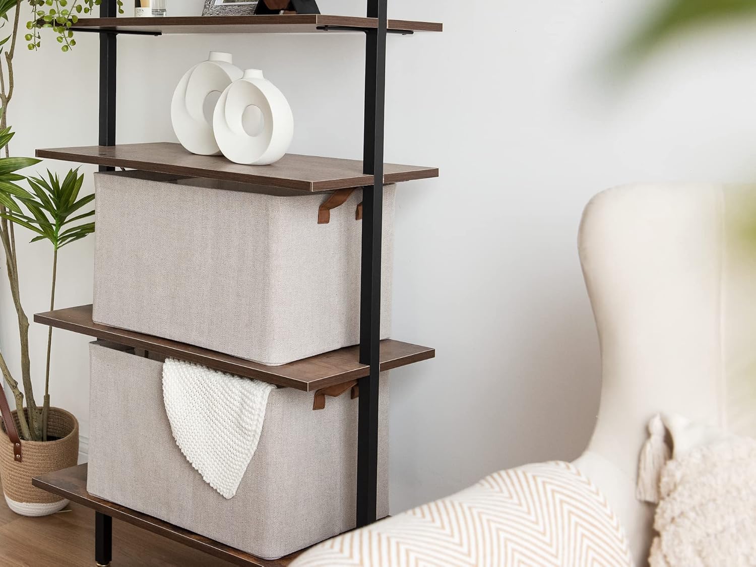 StorageWorks 45L Extra Large Storage Baskets, Storage Bins for Shelves, Closet, Fabric Organizers with Handles and Metal Frame, Brown and Beige, 2-Pack