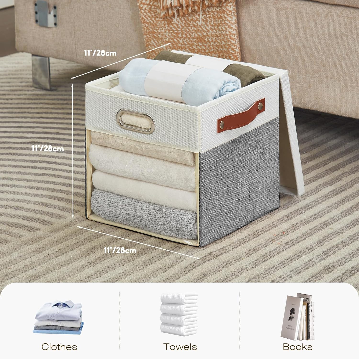 - Excellent Quality: Clear window cube storage organizer is made of high quality linen, soft, breathable and odorless. In addition the storage cube is paired with reinforced thick cardboard, not easy to tear and deform, durable, for your long-term storage needs. The storage basket with lid protects against dust, keeping your items neat and clean.