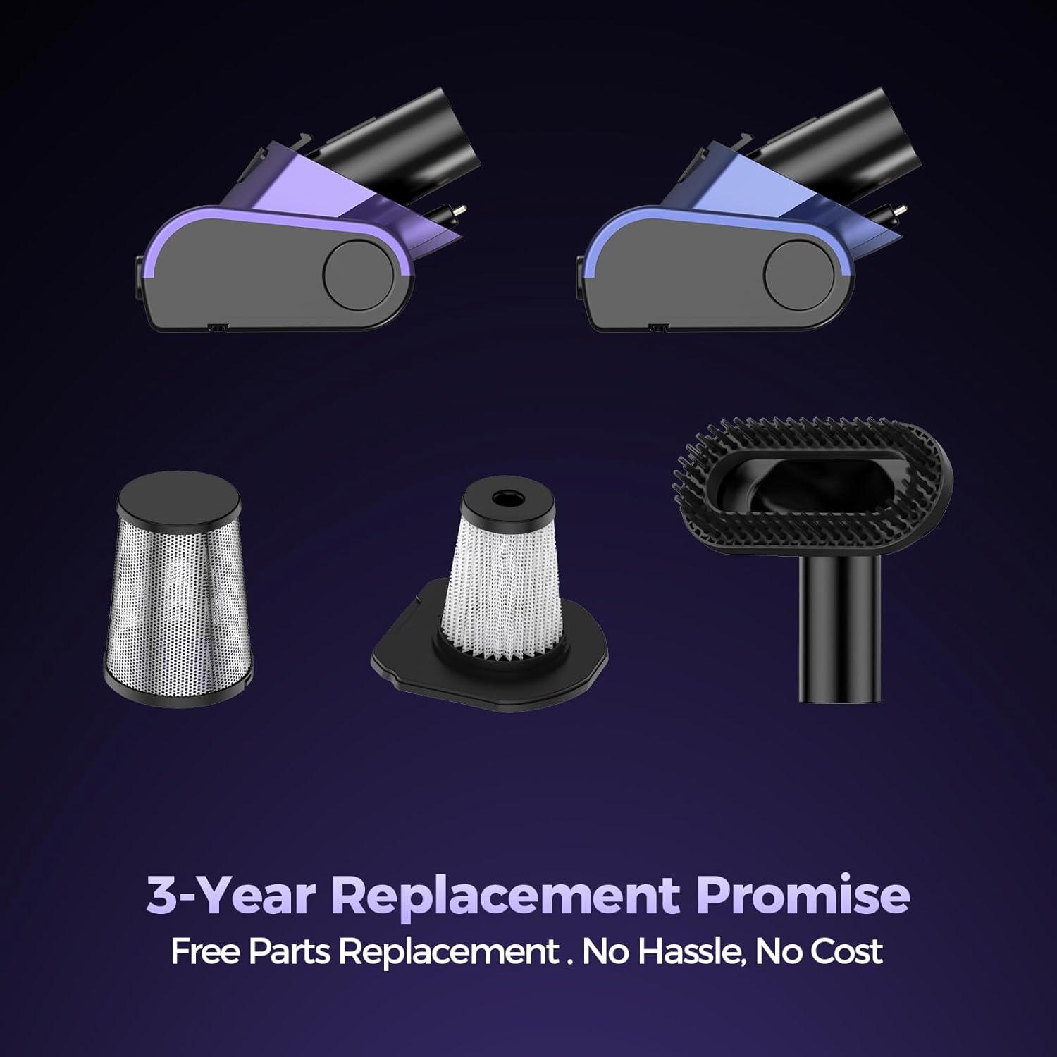 - PACKAGE ACCESSORIES: Various professional accessories, clean like a pro anytime, anywhere! Handheld vacuum x 1, Charging cable x 1, Automatic Rolling Brush x 1, HEPA Filter x 3, 2-in-1 Brush x 1, Long Suction Nozzle x 1, Flexible Hose x 1,User Manual x 1, Gift Box x 1. If you have any questions about the product, emailus and we will answer in 12 hours. We provide refund and exchange service due to quality problems.(3 years of free replacement parts service - such as brushes and filters)