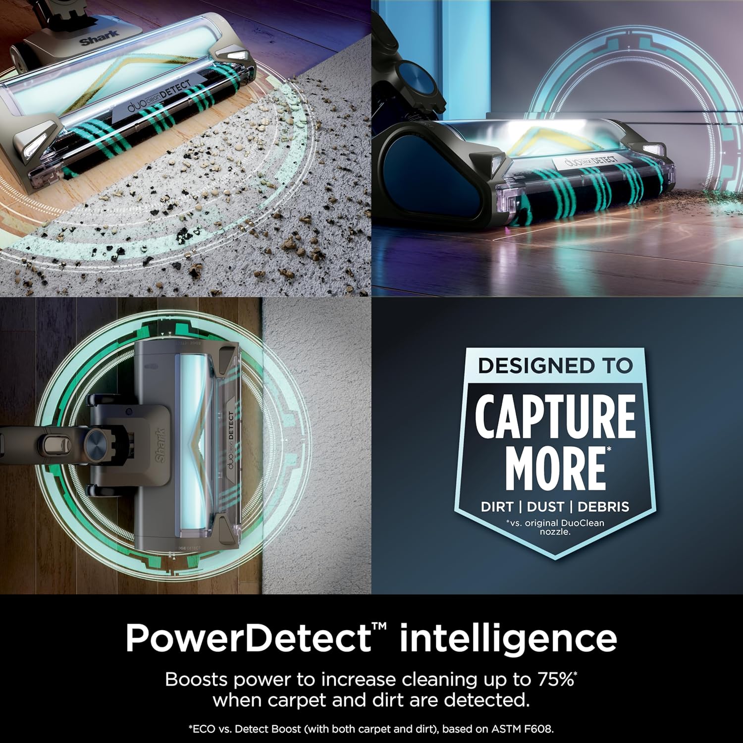 • DESIGNED TO CAPTURE MORE* DIRT, DUST, & DEBRIS: Shark’s redesigned DuoClean Detect nozzle features 2X brushrolls for ALL floors and ULTRA-POWERFUL hair pickup.(*vs. original DuoClean nozzle)