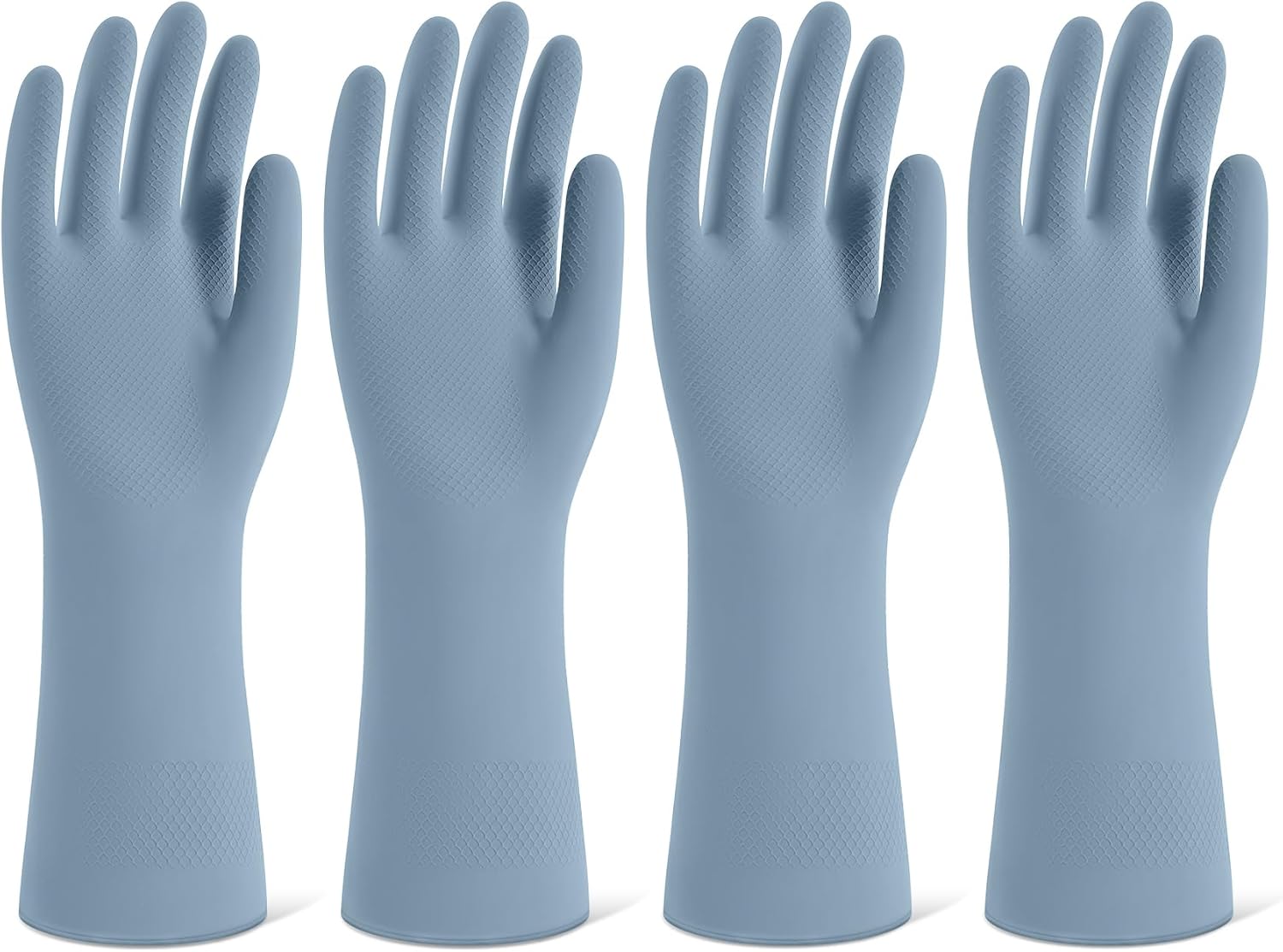 - Style Meets Function: This set includes 4 pairs of cleaning gloves in a single elegant color, perfect for daily use across multiple cleaning tasks. Designed for durability and comfort, these reusable rubber gloves help streamline your routine while maintaining a clean, cohesive look throughout your home.