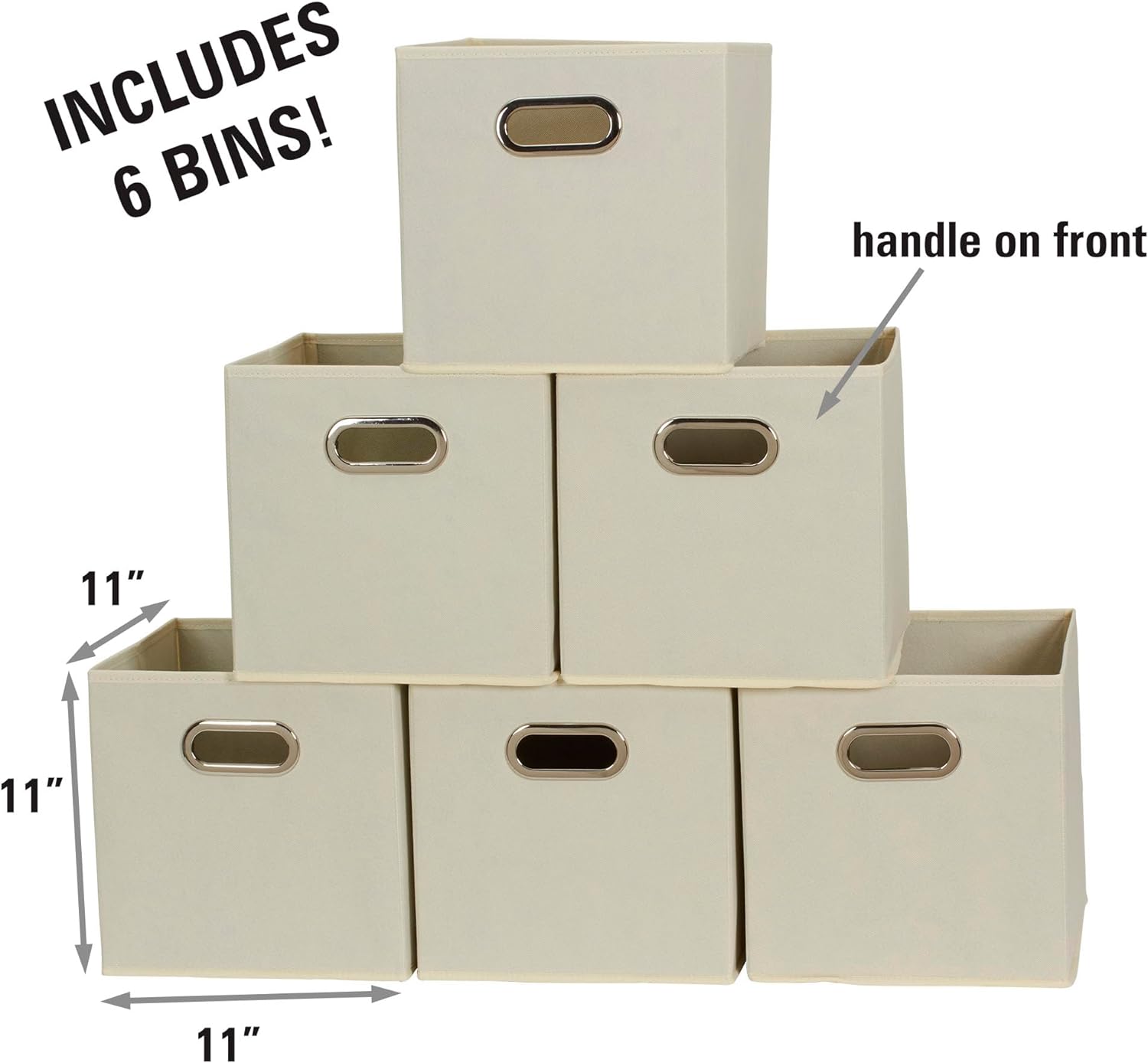 Household Essentials 82-1 Foldable Fabric Storage Bins | Set of 6 Cubby Cubes with Handles | Natural (Pack of 6)