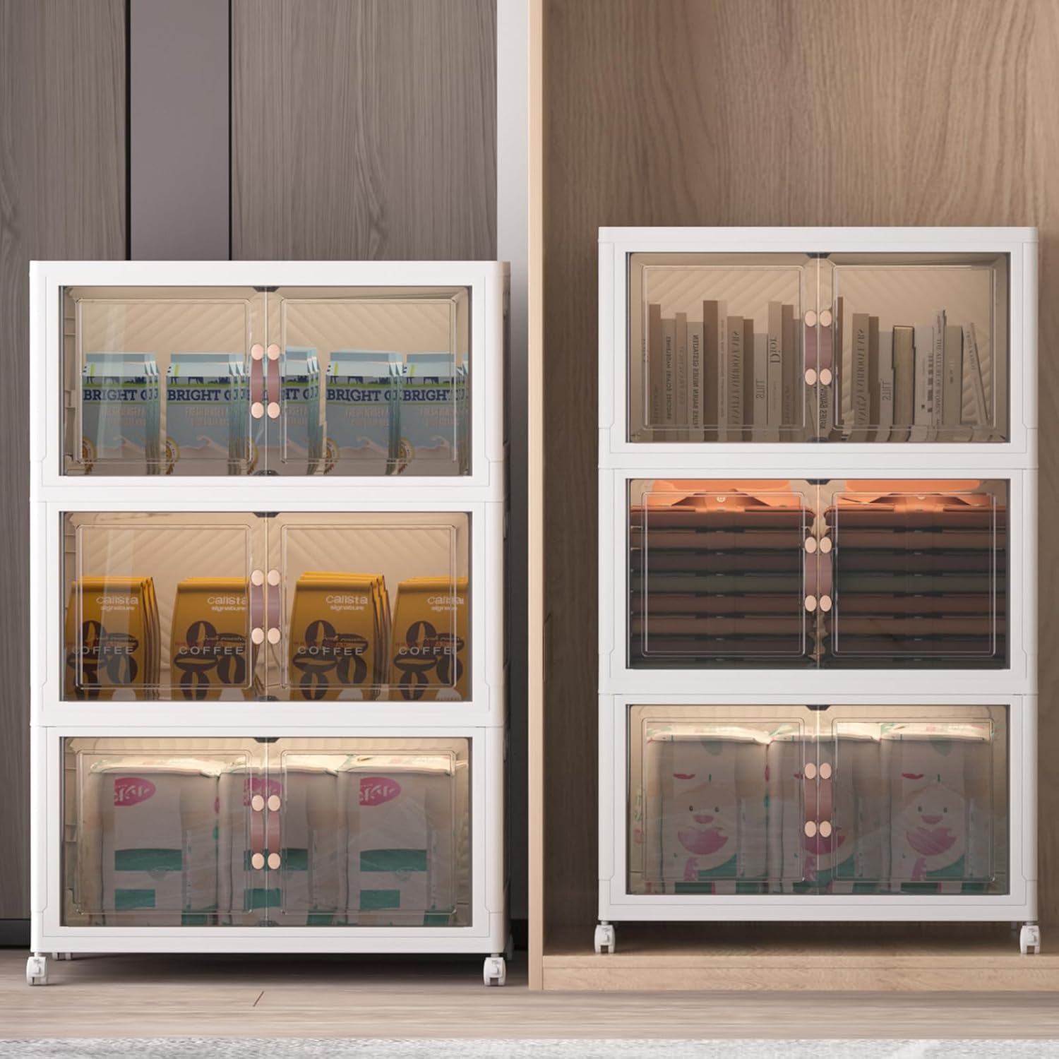 - 【Maximize Vertical Space with Collapsible Design】:Easily fold down to JUST 2.6 inches each tiers when not in use. Especially when you want to move house, you don't need to move bulky cabinets and worry about them being damaged due to transportation. It is a good alternative idea to fixed furniture cabinets and small miscellaneous boxes!