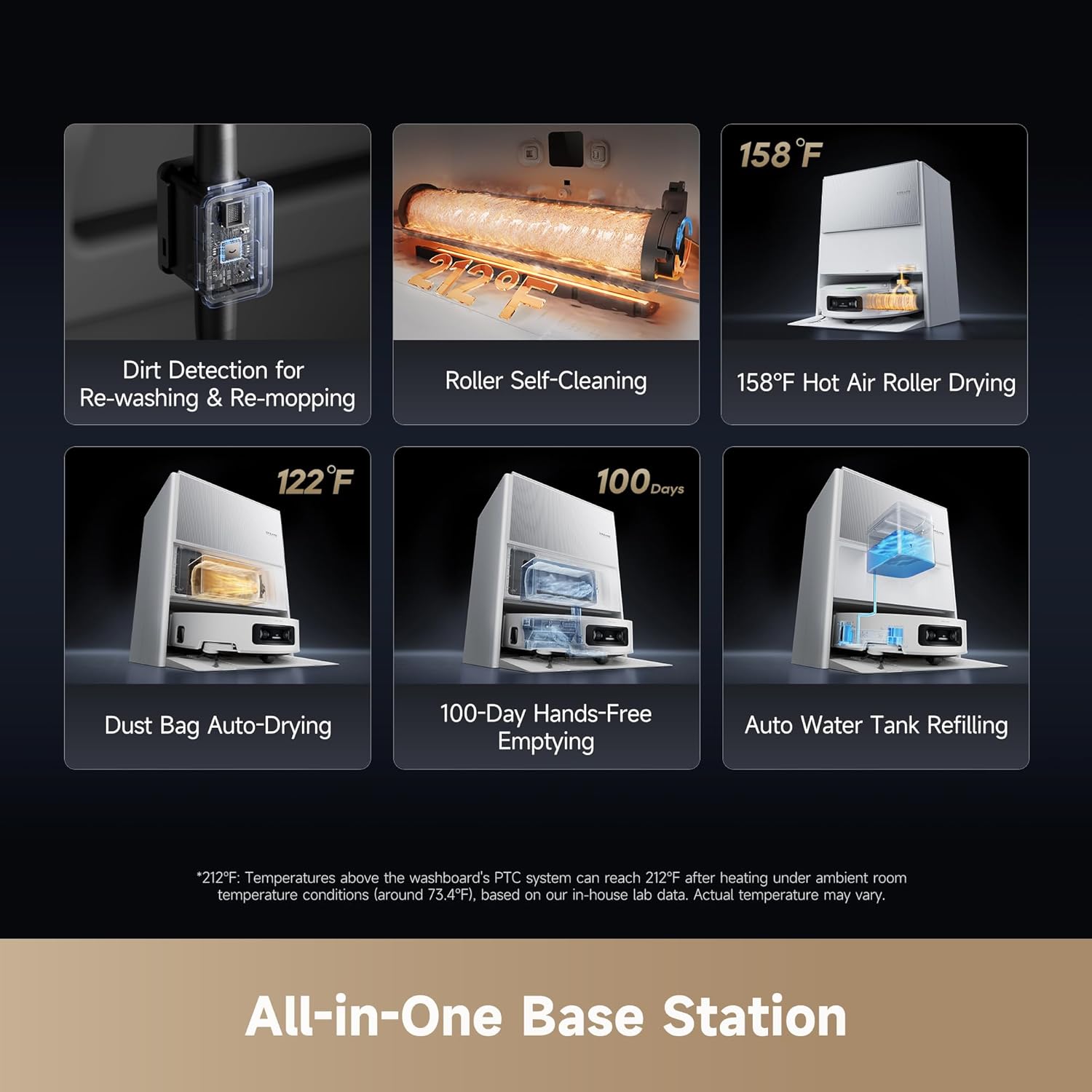 • Leave the Dirty Work to the Dock: The all-in-one PowerDock auto-empties for up to 100 days, deep-cleans the roller at 212°F, hot-air dries it, and even refills water and solution. Enjoy truly hands-free maintenance.