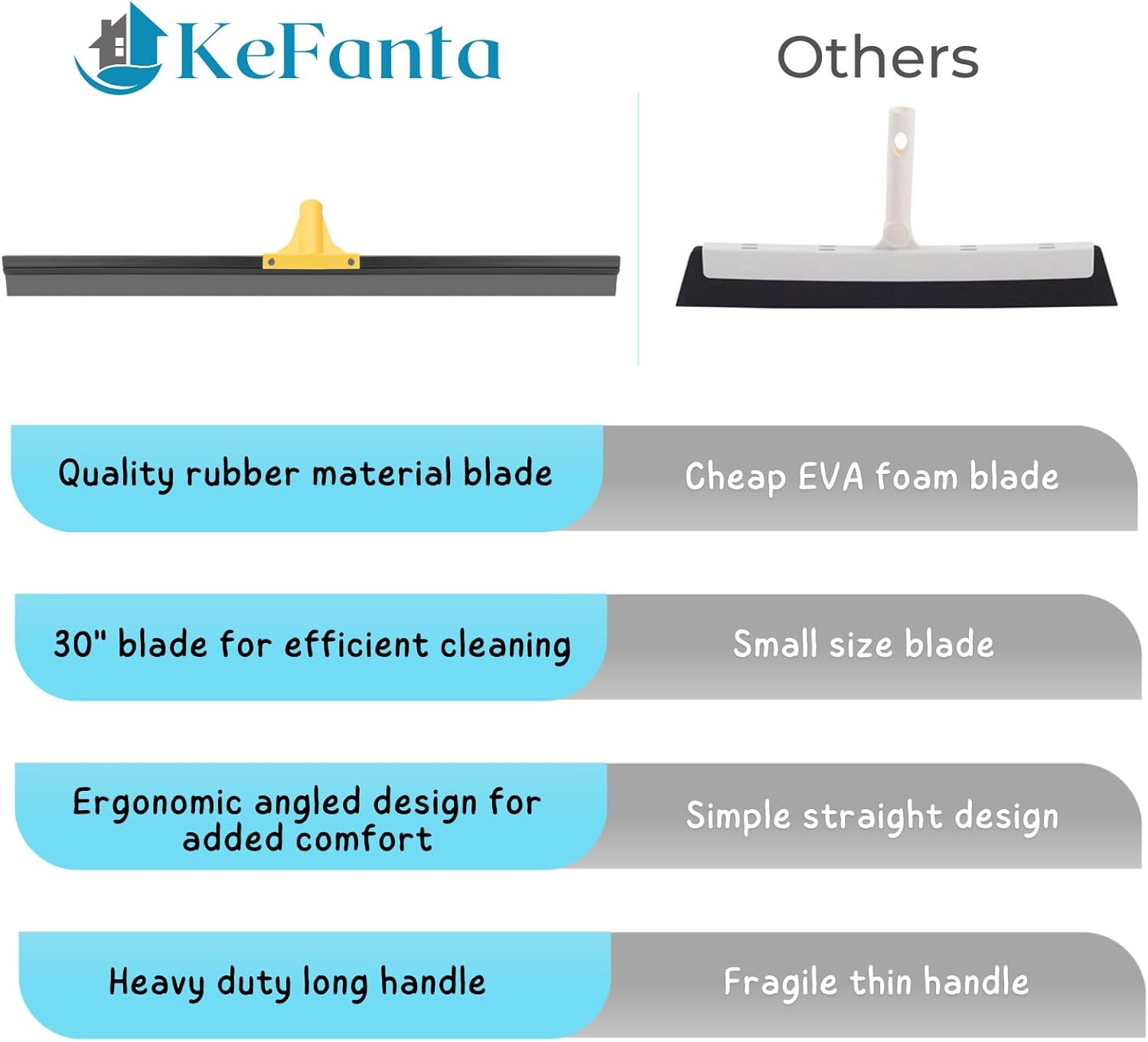 - 【Wide 30-Inch Blade for Maximum Efficiency】 With an extra-wide blade, this floor squeegee makes it easy to remove water from concrete, tile, and other smooth surfaces in just one swipe! Clean large areas quickly and effortlessly.