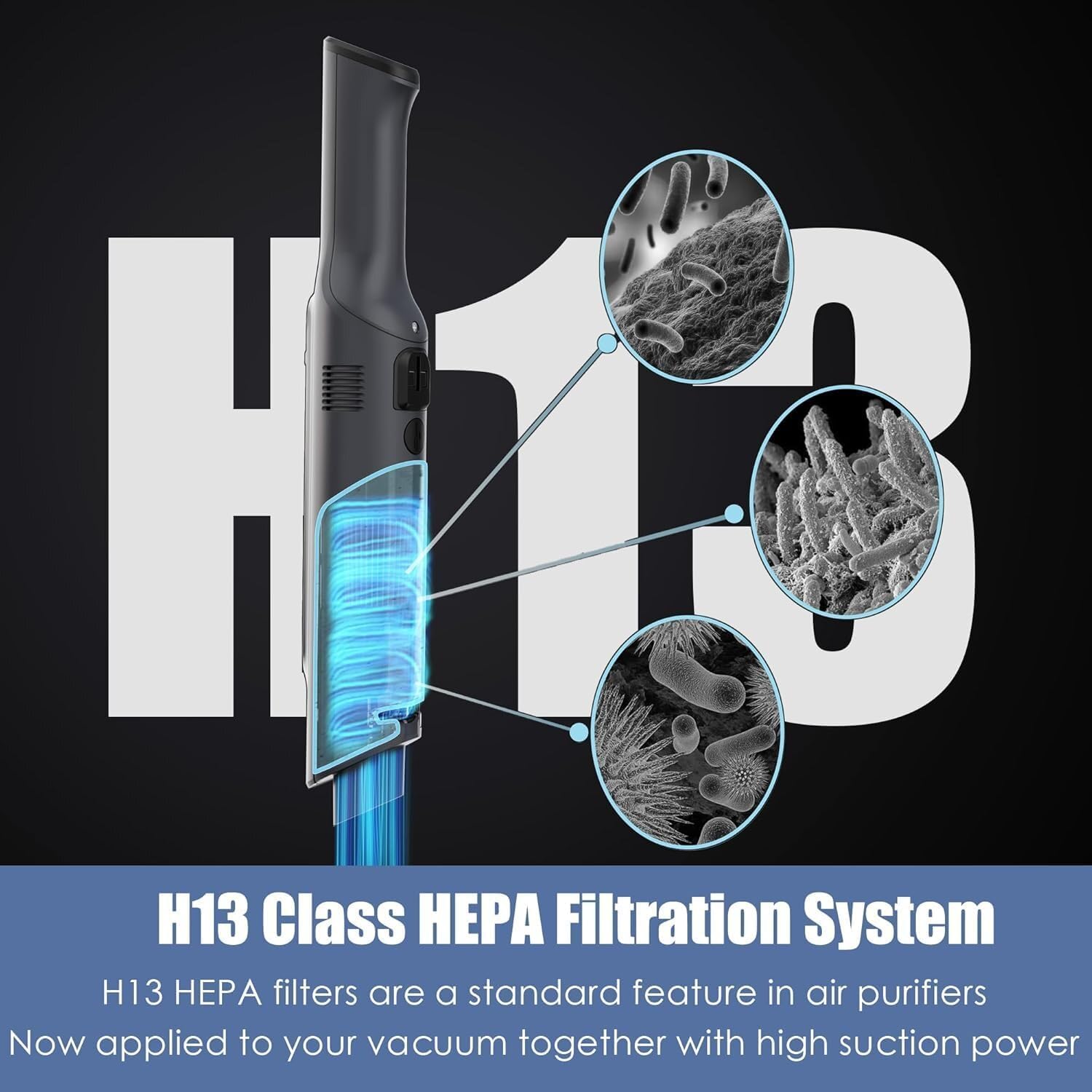 • Special Feature : 2X H13 Class HEPA, Lightweight, Cordless, Bagless, Washable Filter