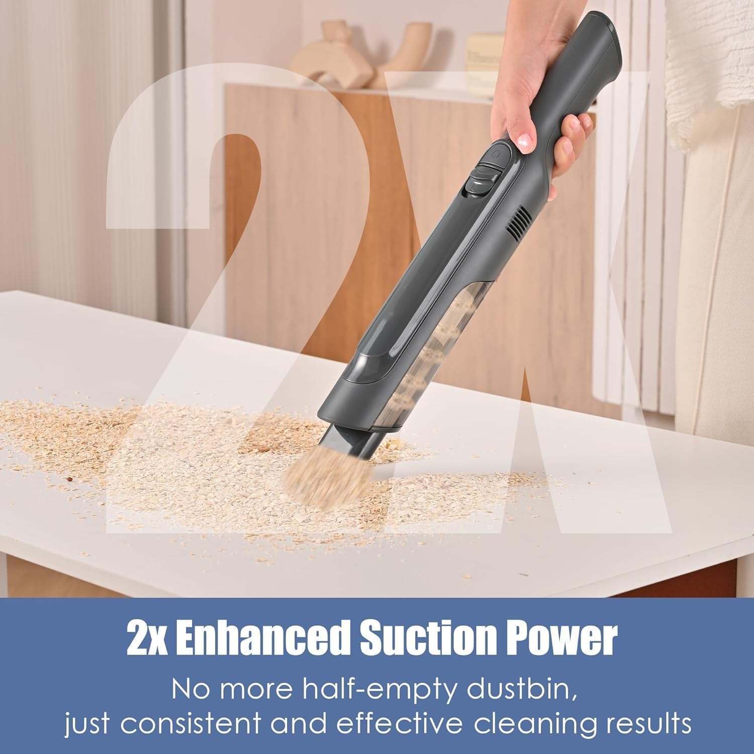 • 2025 Upgrade Exceptional Suction Power: Equipped with a true cyclonic filtration system, this handheld vacuum delivers unmatched suction power, making it perfect for tackling tough messes and debris in every corner of your home.