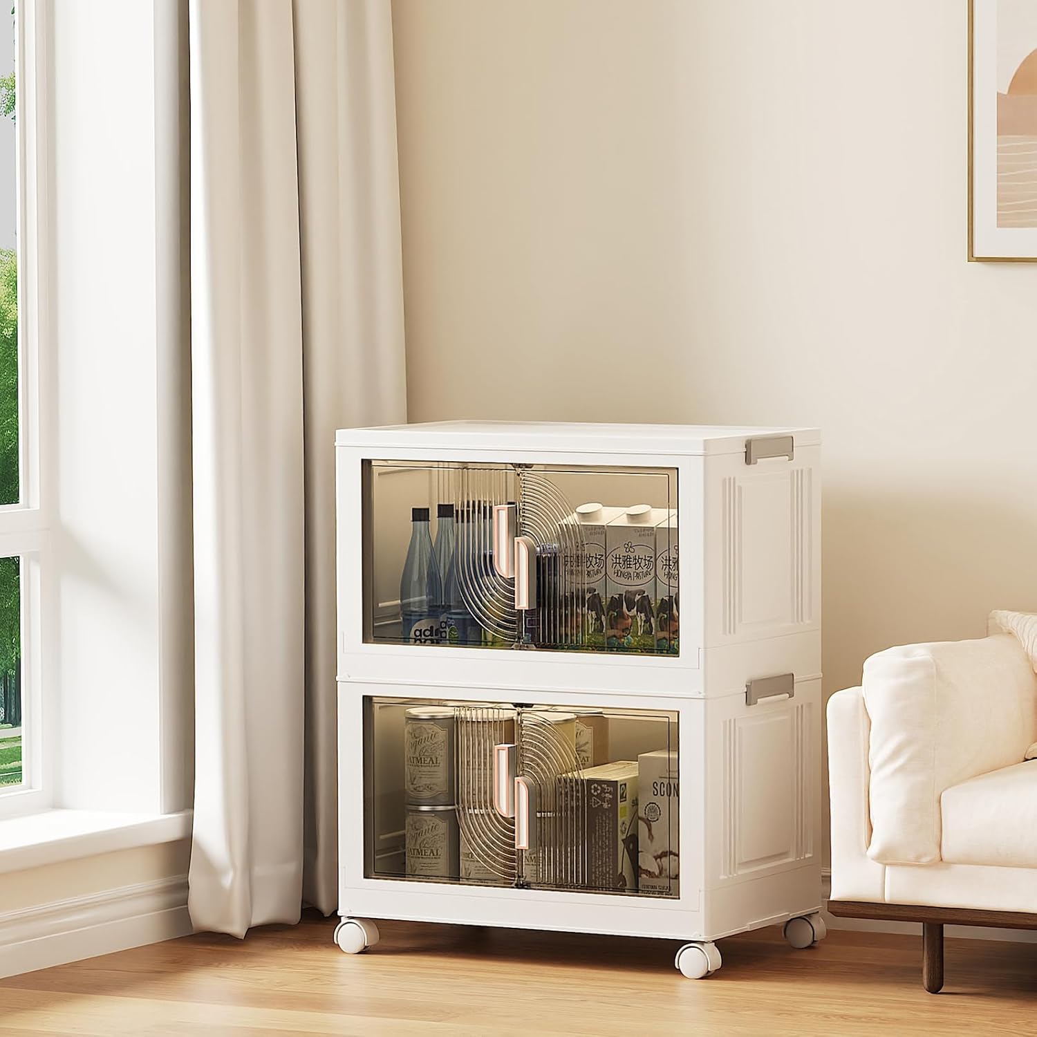 - Stackable & Foldable: No tools needed—assemble in under 3 minutes! Features 2 reinforced latches on each side for secure stacking and stability. Bins fold flat when not in use for compact storage under beds or in car trunks. (Each package includes one lid for top cover only.)