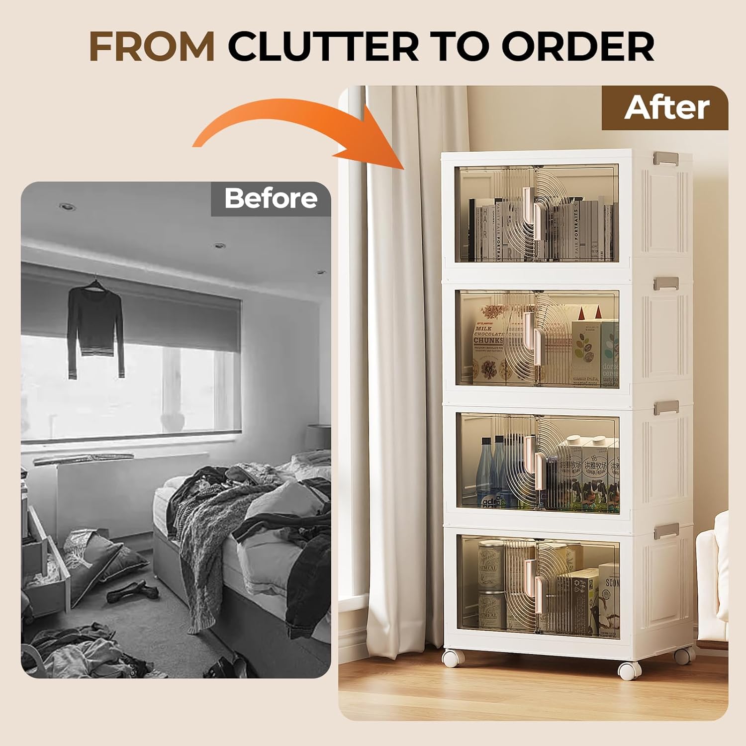 - Stackable & Foldable: No tools needed—assemble in under 3 minutes! Features 2 reinforced latches on each side for secure stacking and stability. Bins fold flat when not in use for compact storage under beds or in car trunks. (Each package includes one lid for top cover only.)
