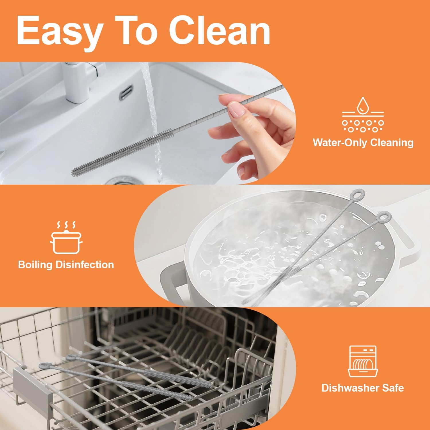 - Safe & Durable Silicone Bristles: Made from high-quality, food-grade silicone, BPA Free, our straw brush are gentle on straws (won't scratch) yet tough on buildup. The flexible Handle bend to scour every curve and corner for a thorough clean, and won't shed or break like bristle brushes.