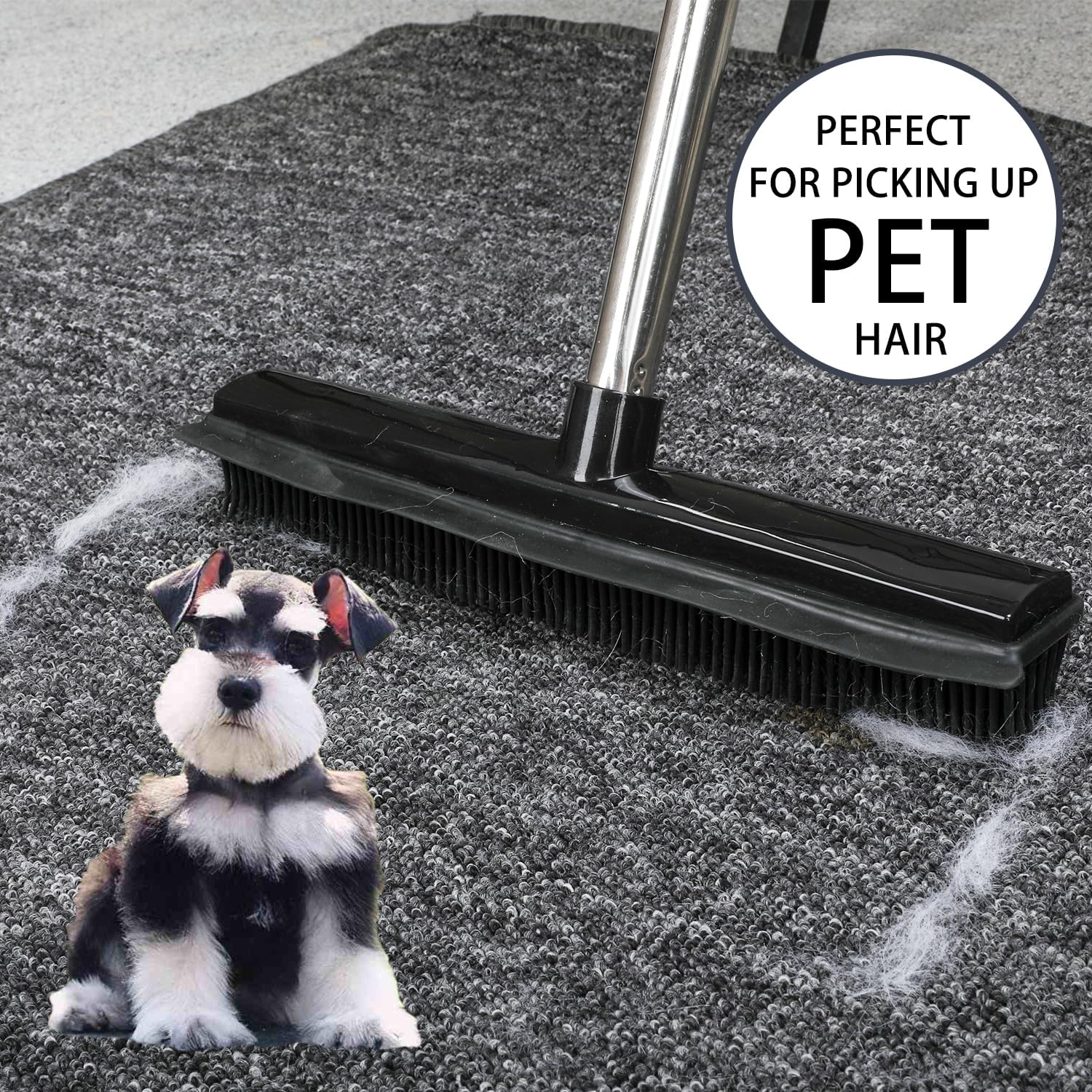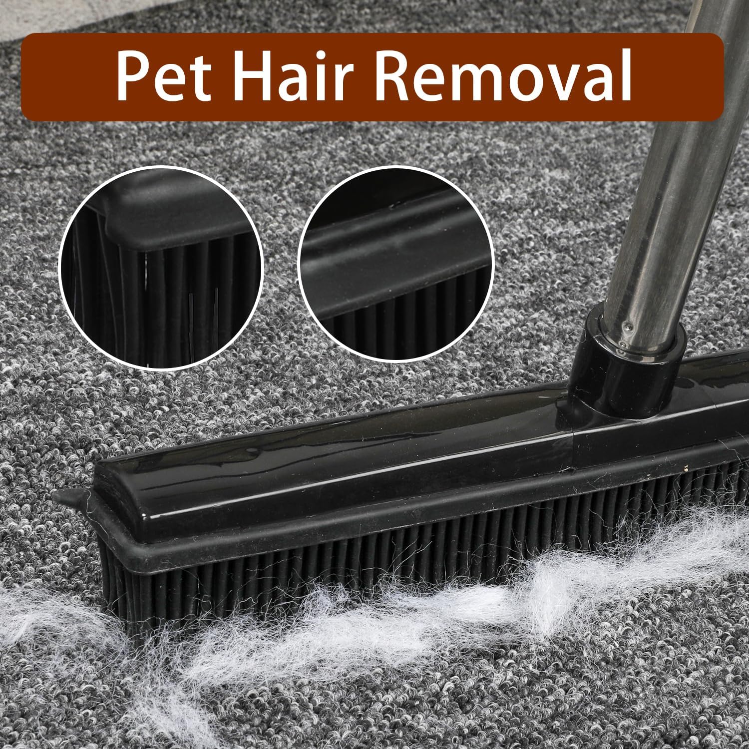 Rubber Broom and Pet Hair Removal Brush Set for Carpet,Fur Remover Rake with Squeegee,Lint Brush for Pet Dog Cat Hair