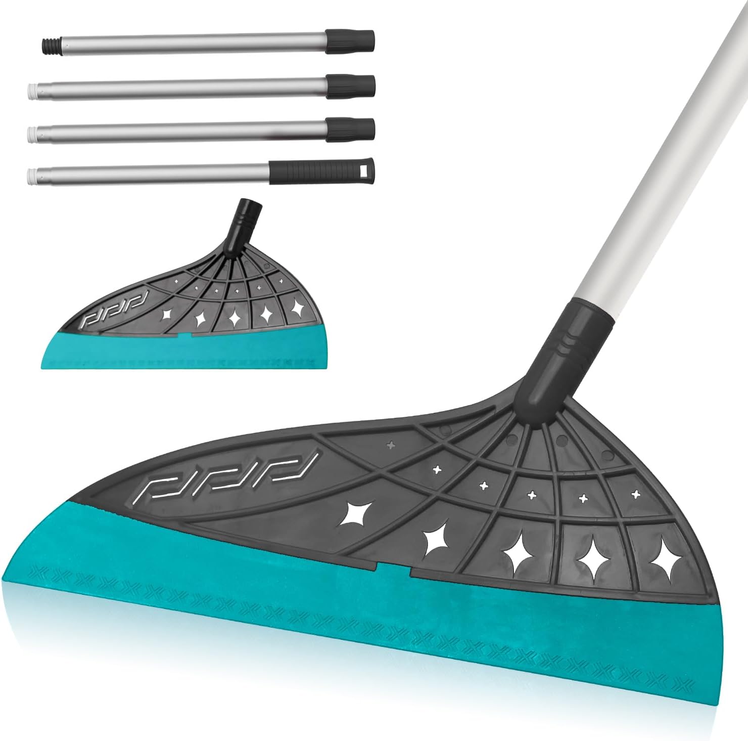 Magic Air Broom, Silicone Broom Floor Squeegee for Glass and Floors with 60’’ Long Aluminum Adjustable Handles,Silicone Squeegee Broom or Pet Hair, Dust and Liquids (Gray)