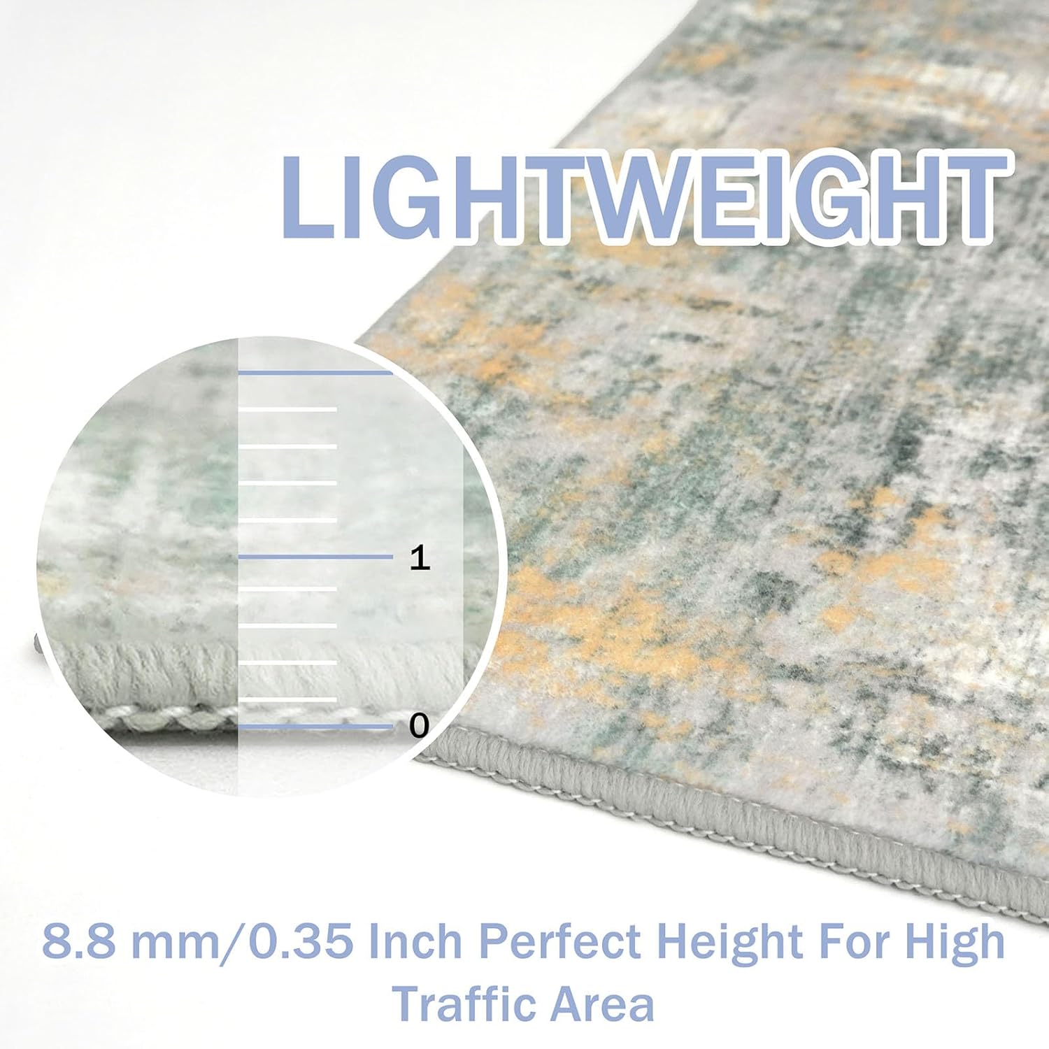 - Key Attribute: Size: 2' x 3'(24"x36"); Style: Printed Abstract Modern; Thickness: 0.35 in.; Color: Light Green, gray, orange. Note: Due to differences in computer monitors, the rug colors may vary slightly