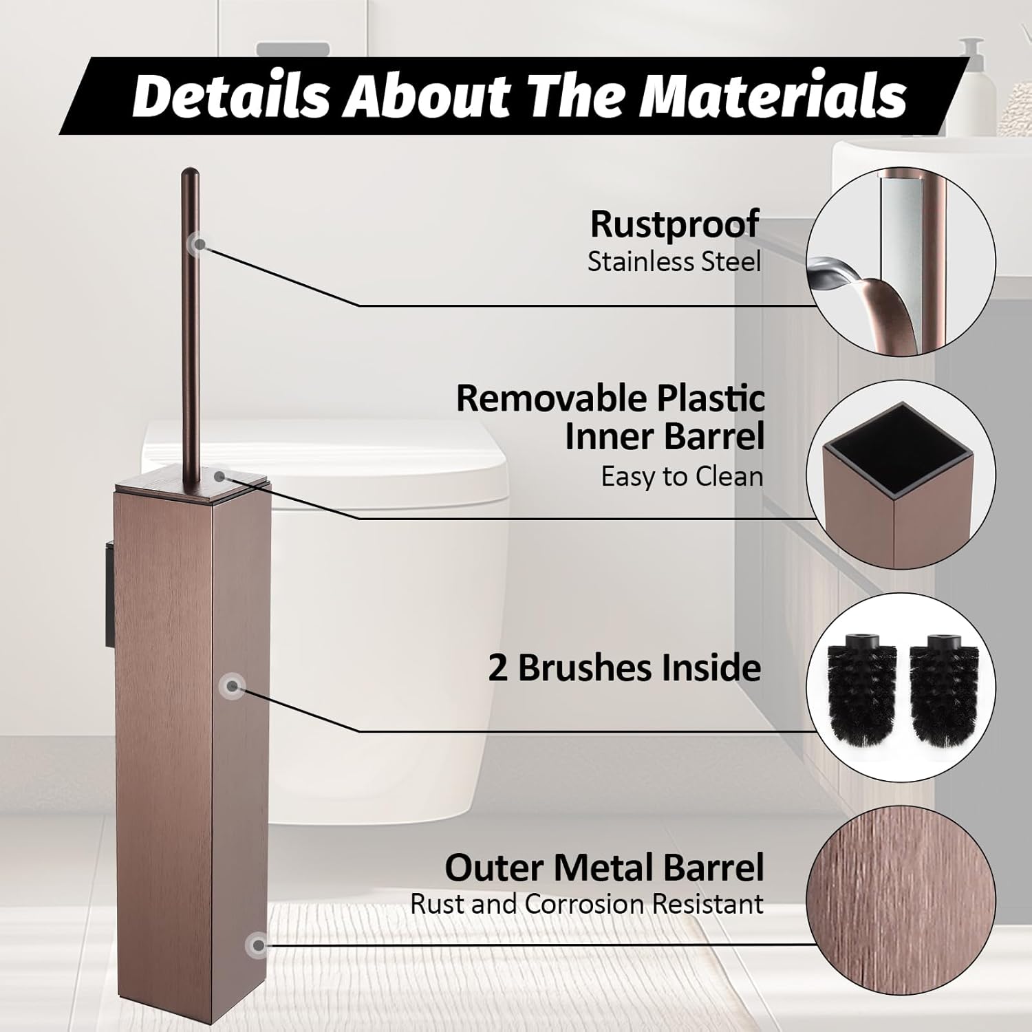 • Durable & Rust-Resistant - Made with an aluminum alloy cup and stainless steel handle, this toilet brush is designed to resist rust and withstand humid environments.