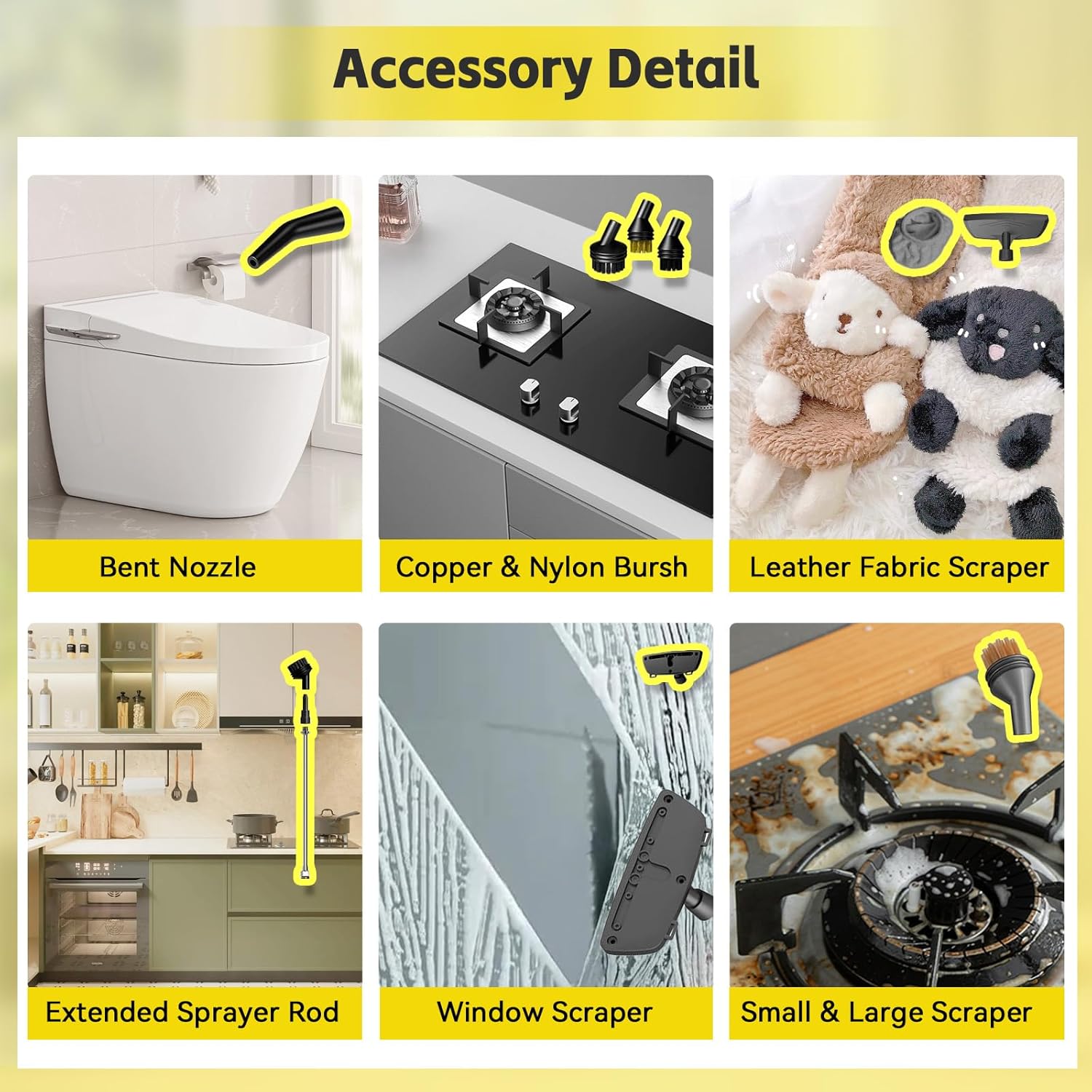 - 【Chemical-Free Deep Cleaning】This steam cleaner for home uses only water—no harmful fumes or residues. It's a safe, eco-friendly solution for families with kids and pets. Enjoy the power of high-temperature steam that cleans deep while keeping your home fresh and healthy. Perfect for baby gear, pet areas, sofas, mattresses, and more