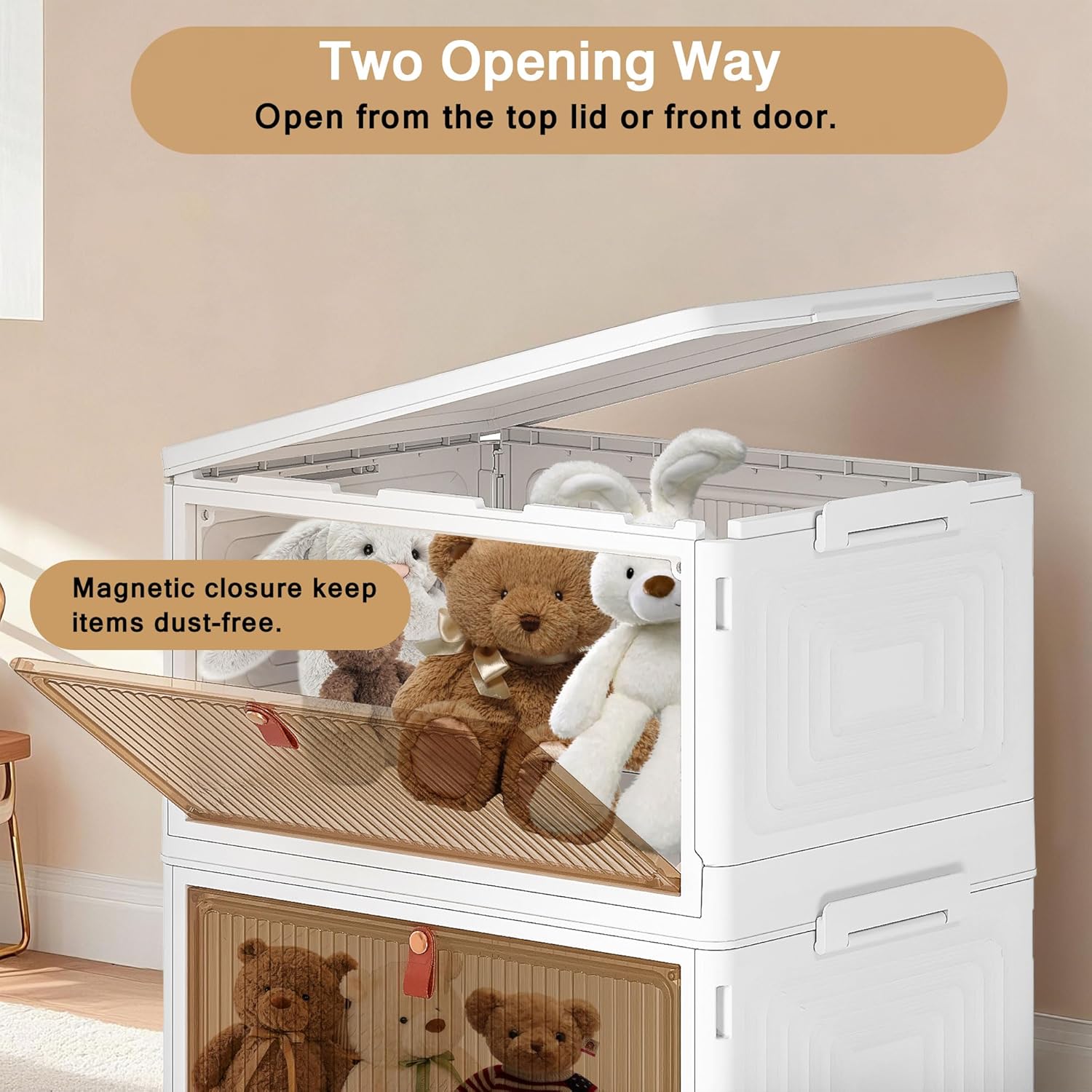 - Easy to Access: The stackable bins for storage open from top lid or front door with magnetic closure, keep item dust-free. The clear front panel makes this storage and organization easy to organize.