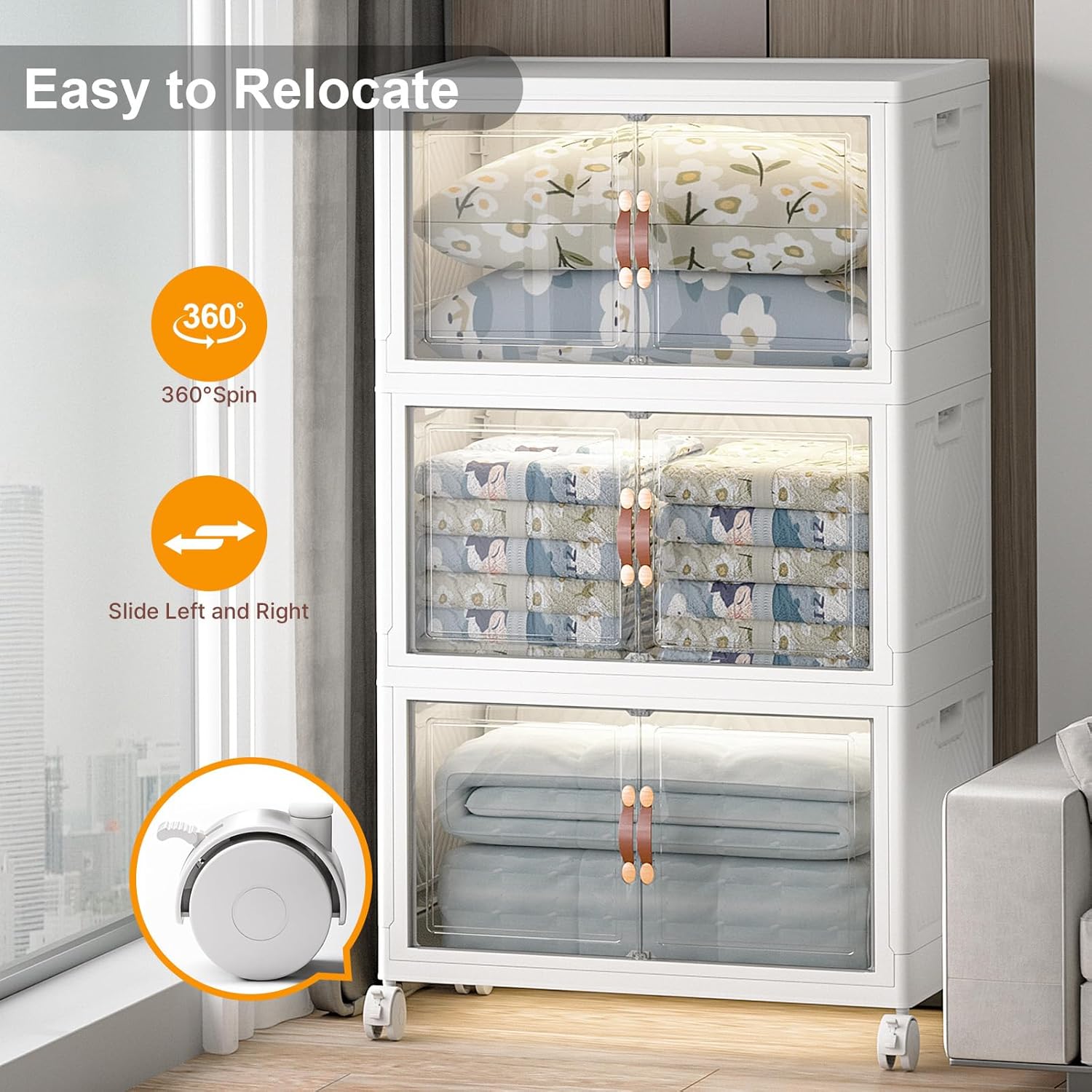- 【Smooth Mobility with Locking Wheels】: Easily move your storage wherever you need it. These stackable storage bins with wheels feature four smooth-rolling casters, including two locking brakes, keeping your bins stable yet mobile — great for bedrooms, dorms, or offices.
