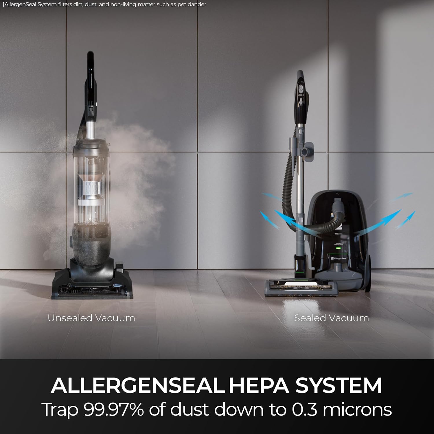 • Completely Sealed Air Path: Traps 99.97% of dust down to 0.3 microns inside your vacuum, keeping them out of the air you breathe