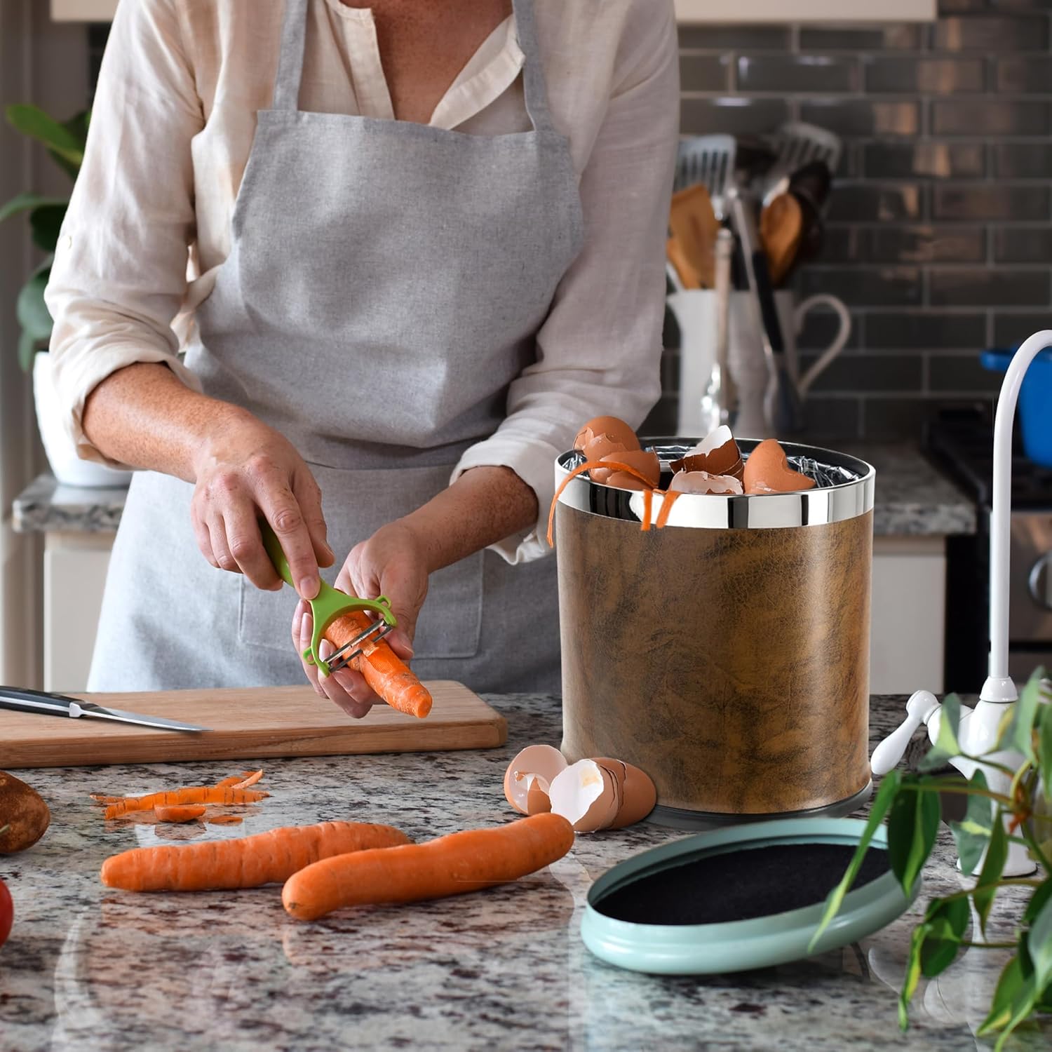 'Invisi-Overlap' Open Top Leatherette Trash Can, Small Office Wastebasket, Modern Home Décor, Oval Shape (Brown)