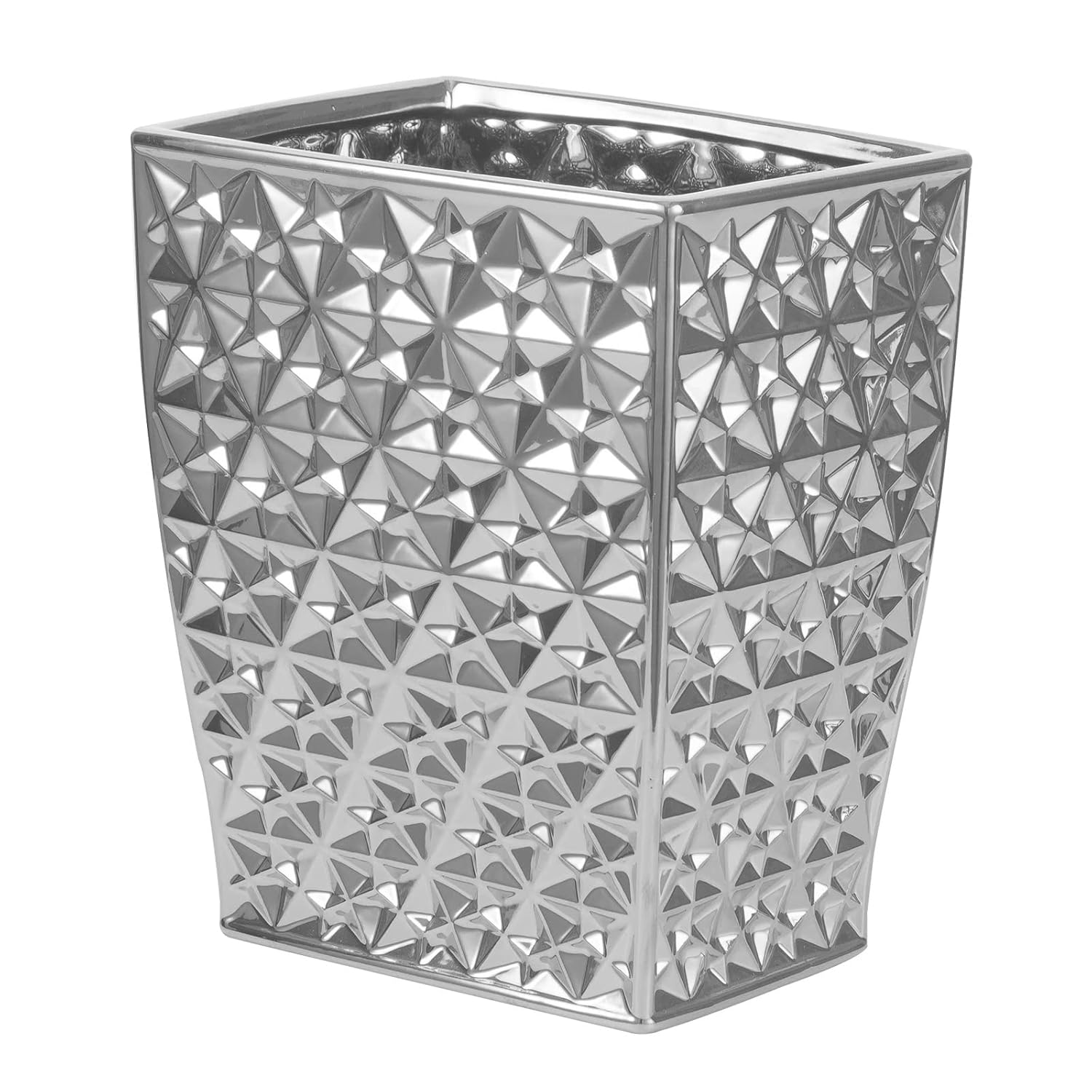 Ceramic Rectangular Small Trash Can - Wastebasket, Garbage Container Bin for Bathroom, Bedroom, Kitchen, Home Office, and Kids Room, Holds Waste, Recycling - Silver