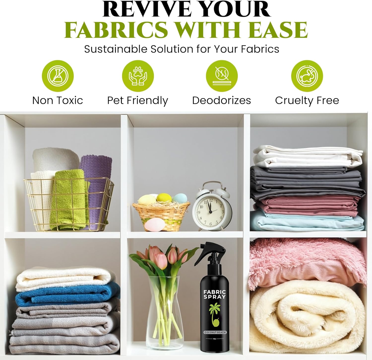 - MULTI-PURPOSE FABRIC FRESHENER SPRAY: This versatile spray can also be used as a carpet, upholstery, bedding, and towel spray. You can also add it to your guest room essentials list to make your guests feel relaxed during their stay. It also works as a capter deodorizer and freshener!