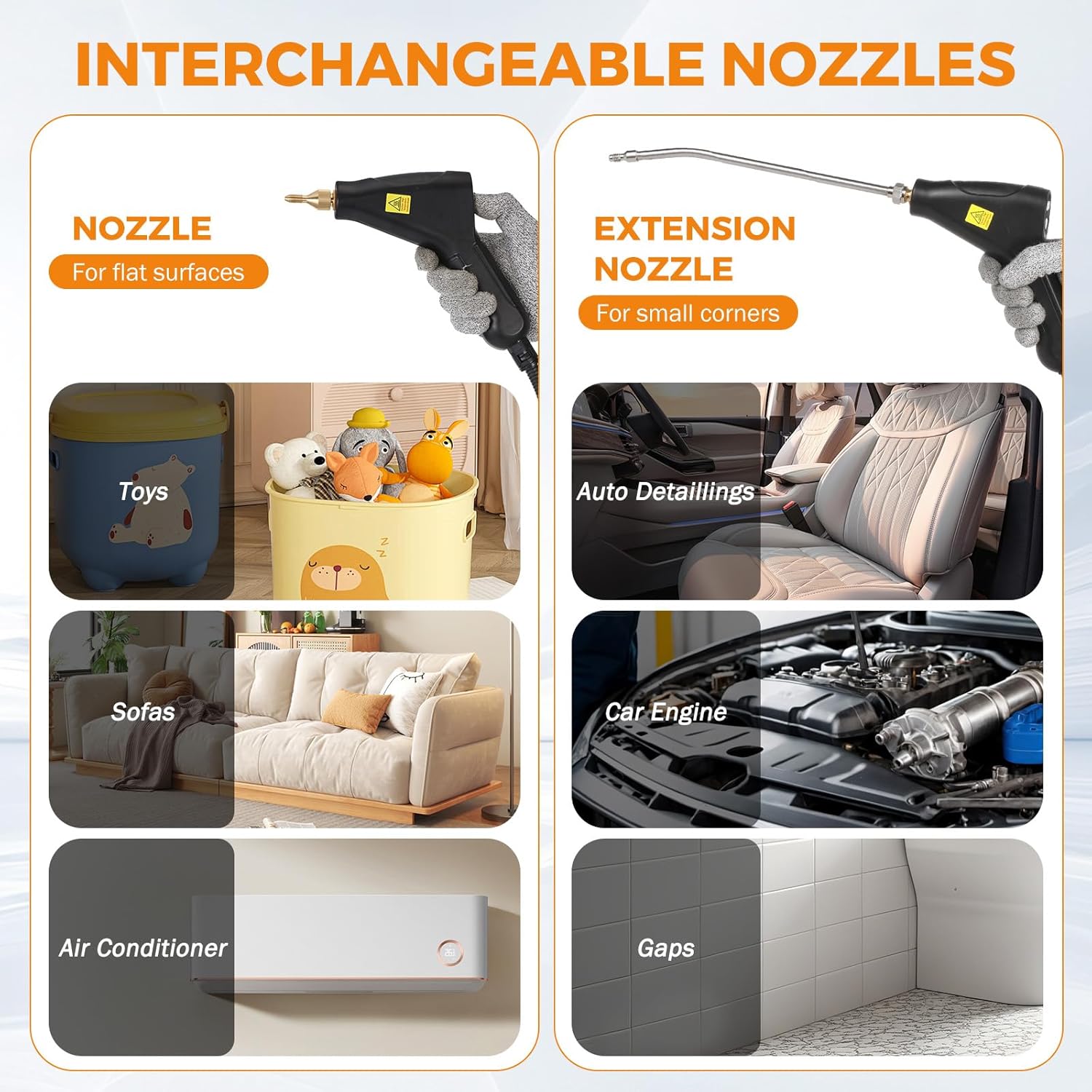 • **Chemical-Free: Cleans car engine, tiles, floors, upholstery and wall without harmful chemicals, ensuring no harmful fumes or residues are left behind.