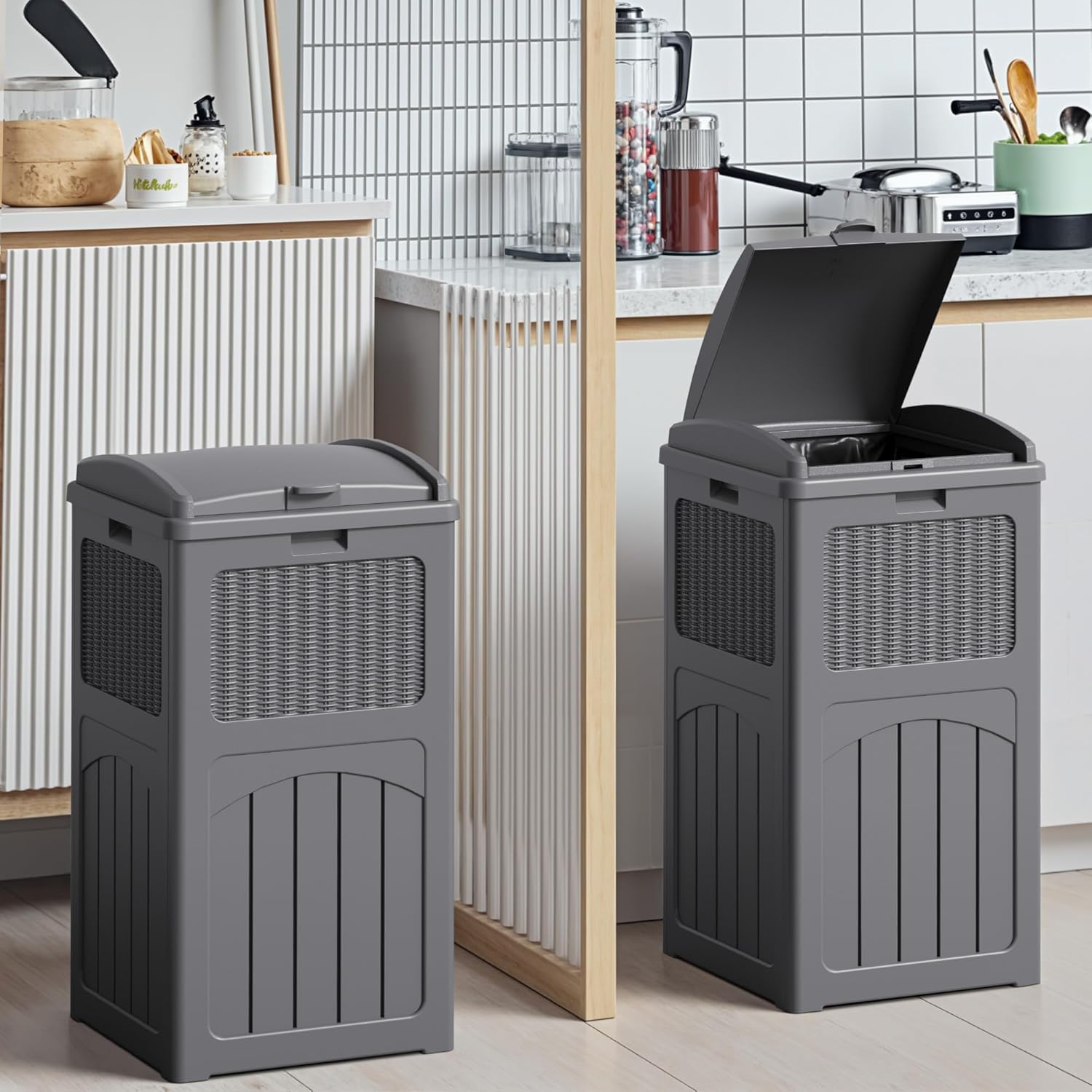 • 33 Gallon Capacity: 16 "L x 16 "W x 32 "H, Compatible with 30-33 gallon trash bags. Convenient for emptying trash and replacing trash bags
