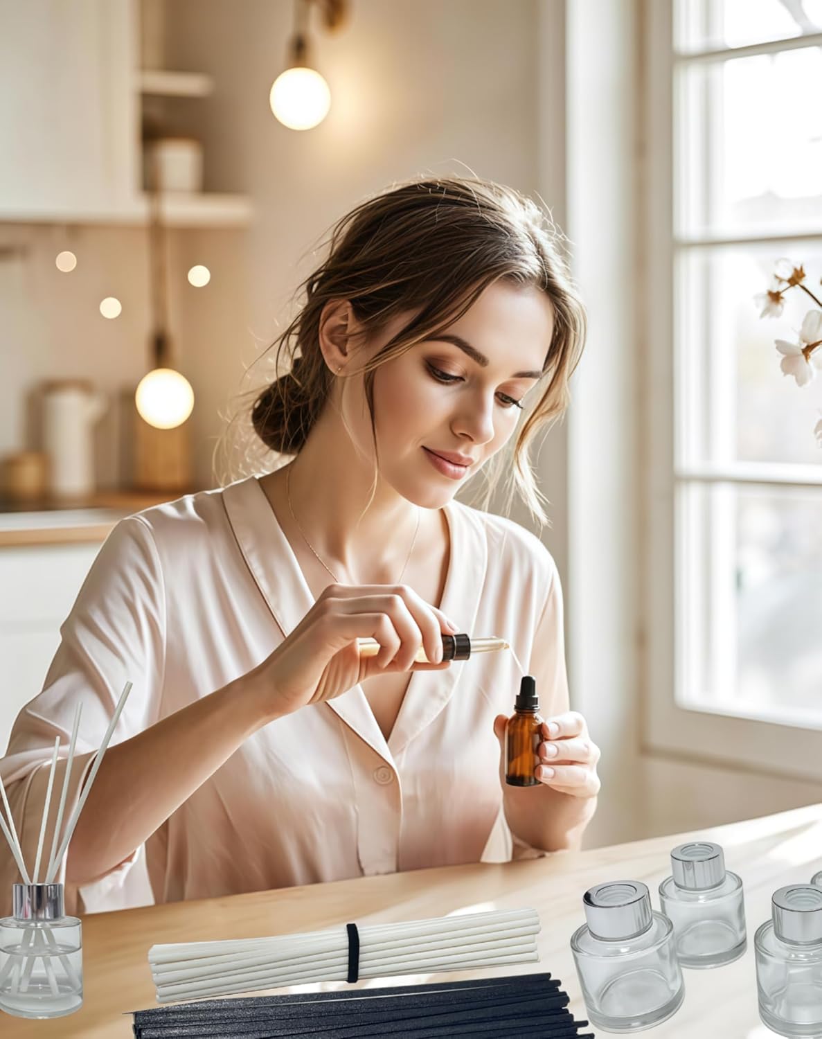 - Homemade Reed Diffuser Accessories: Includes 20Pcs thickness 3.5mm - length 190mm white reed diffuser sticks, 4Pcs reed diffuser bottles