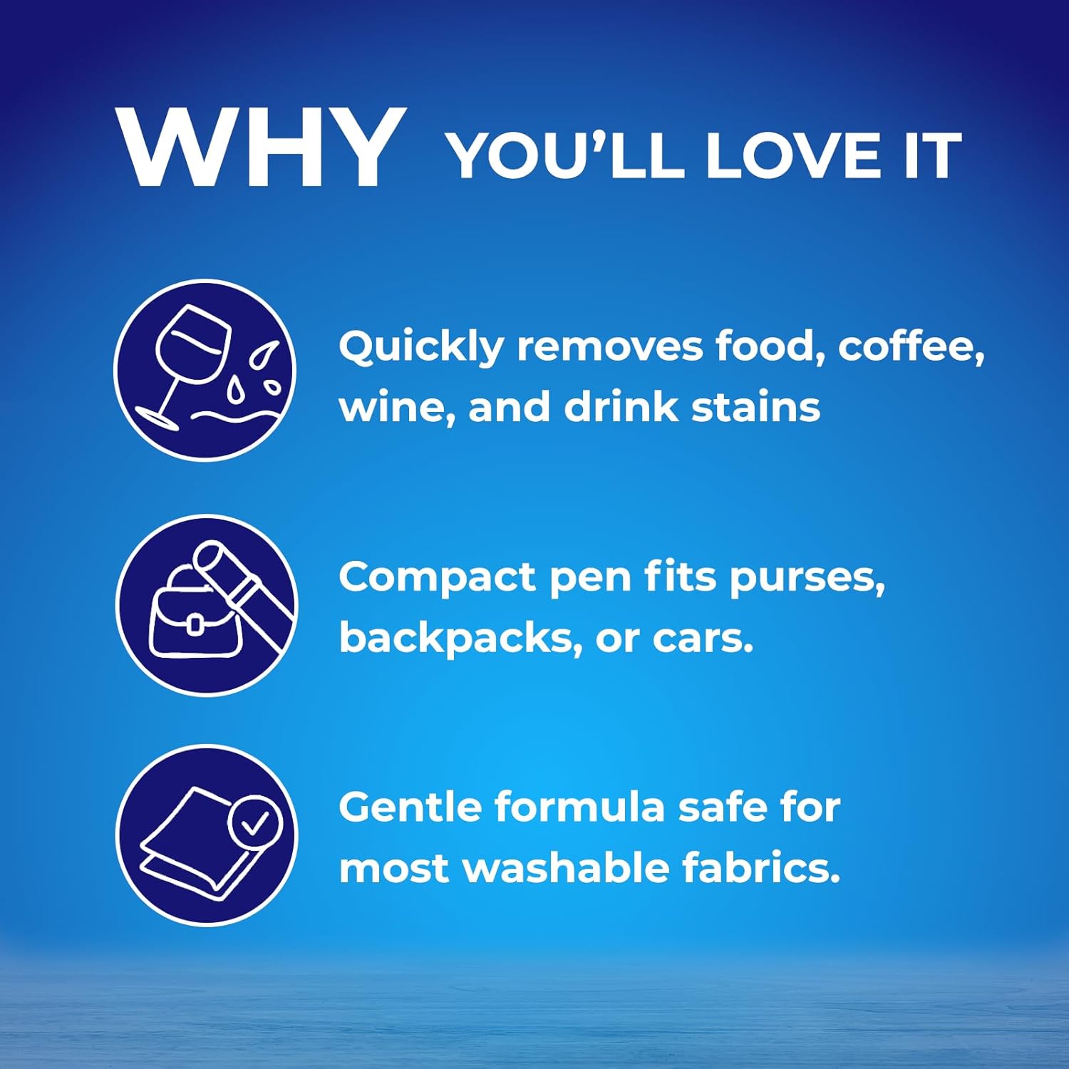 - 【Instant Stain Removal】Quickly and effectively tackles a variety of fresh stains, including food spills, coffee, wine, grease, and more. Our pen's formula works on contact to lift stains before they set.